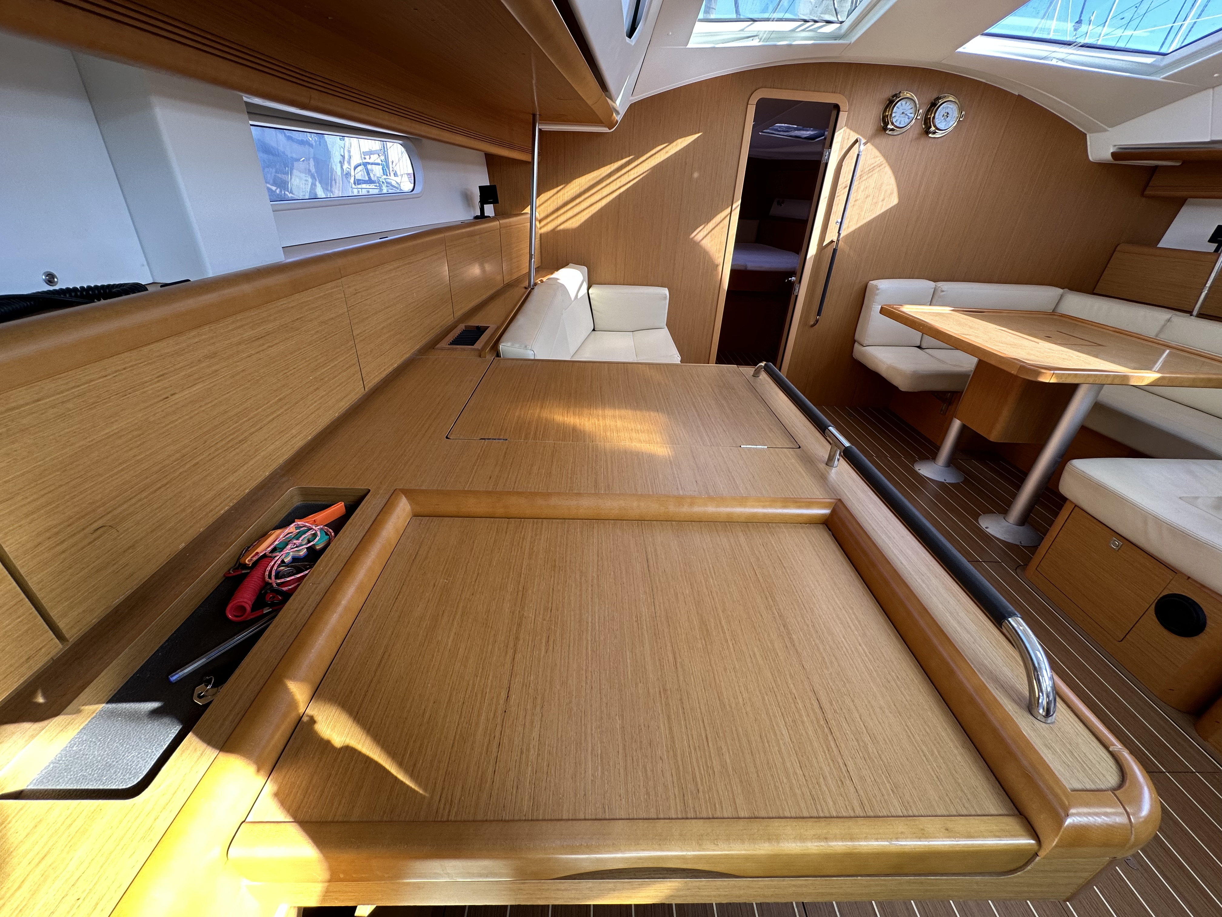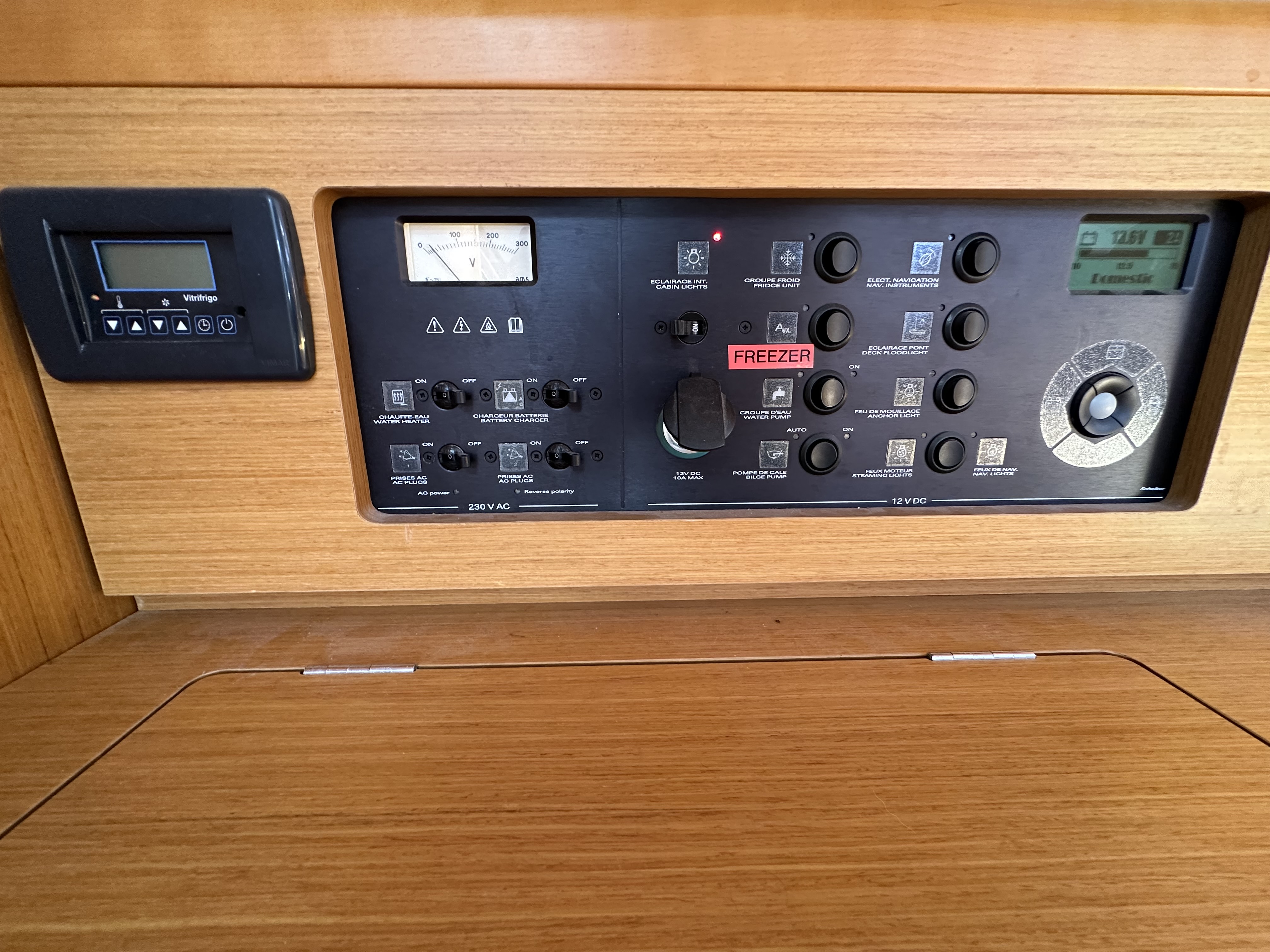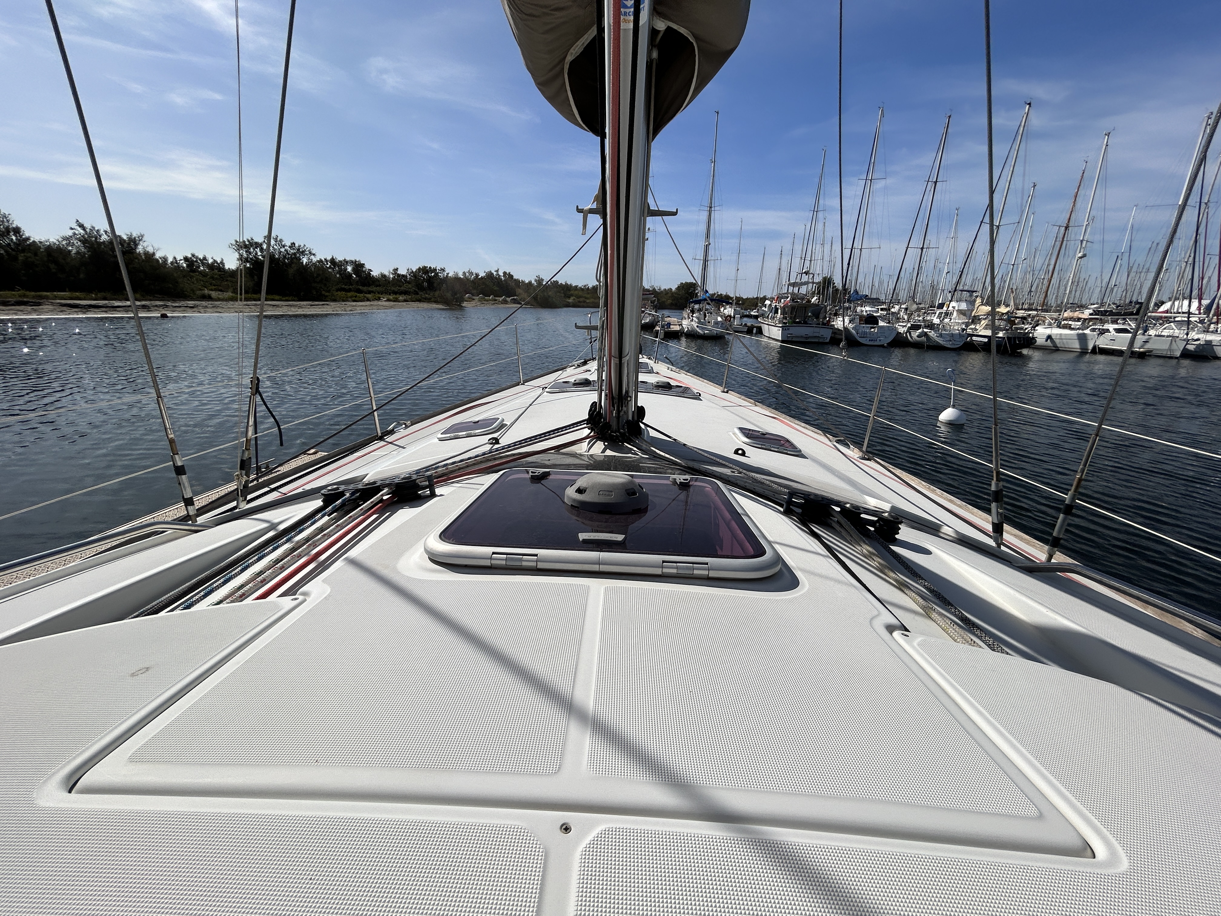 For sale Jeanneau Sun Odyssey 50 DS with reversible air conditioning, recent sails, 2 X 150W solar panels on gantry from 2018, bowthruster with dedicated batteries, batteries replaced in 2023, Genset Fisher Panda 5000 from 2018, new autopilot system Raymarine from 2023, chartplotter from 2016