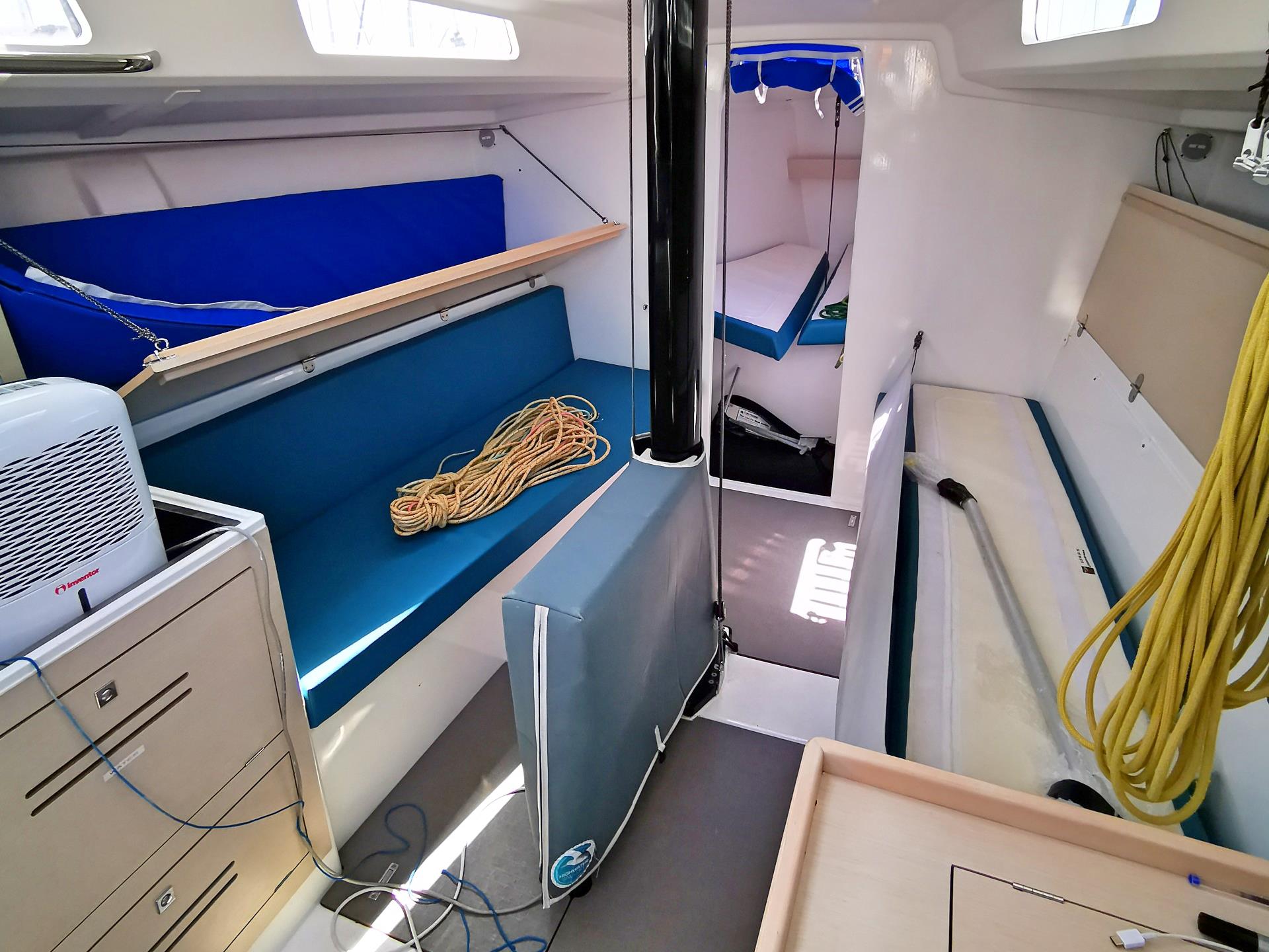Hull and Deck constructed of Airex & balsa cored. Polyester infusion sandwich construction.