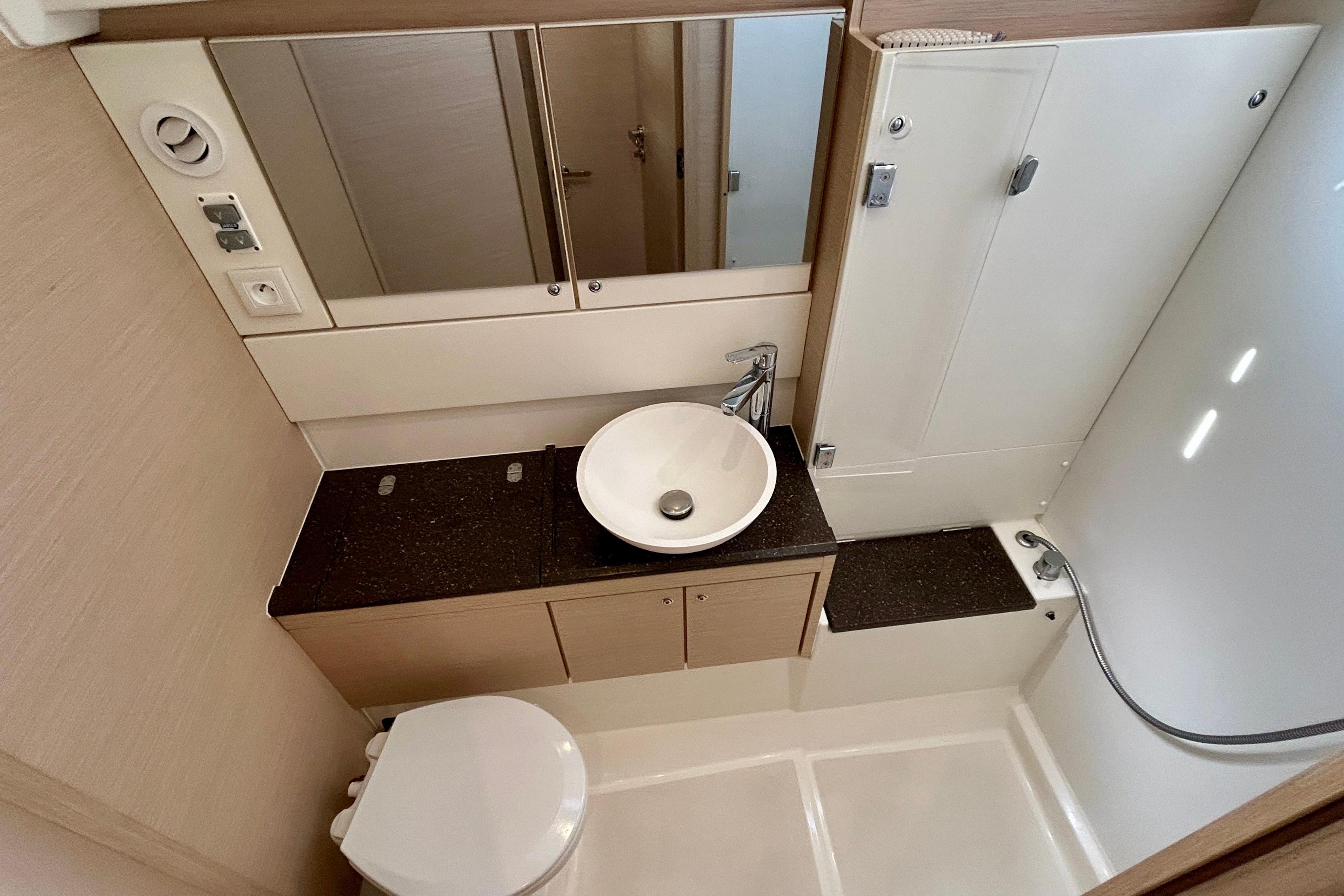 Accueillant jusqu'à trois cabines et deux salles de bain, le Jeanneau 54 offre un espace ample pour la détente et le confort. Le guindeau électrique améliore la commodité, rendant l'ancrage facile.