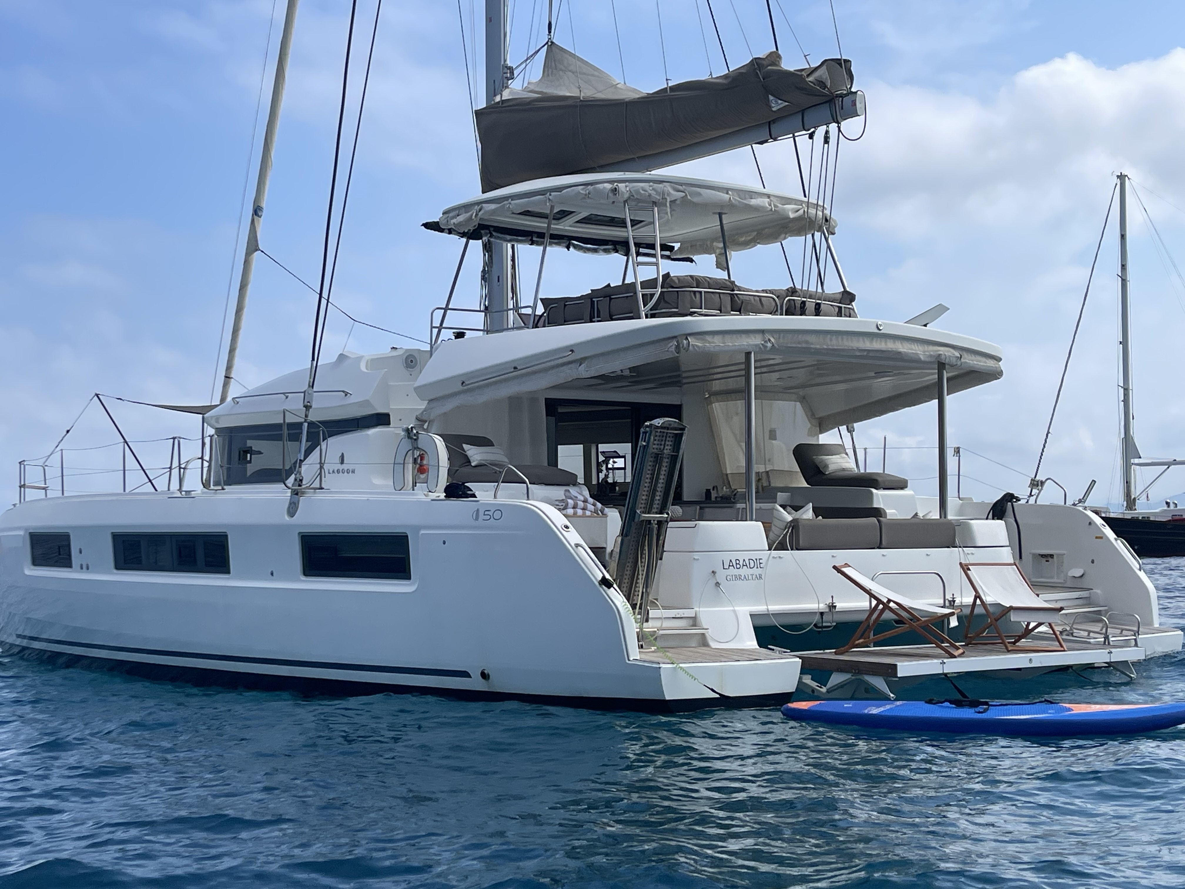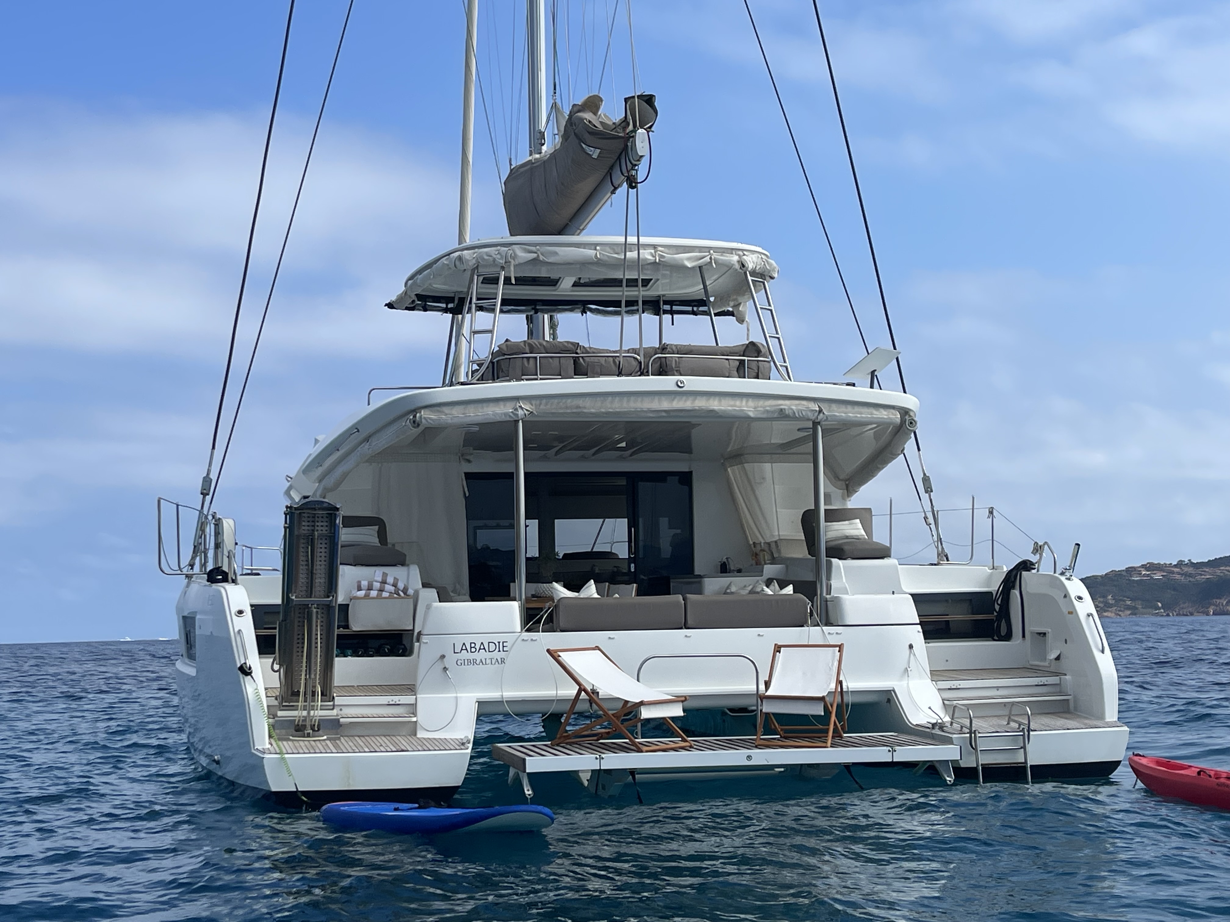 LABADIE is a Lagoon 50 that truly is well cared for. She has benefitted from a full time captain by a previous owner who had very high expectations. The current owner has enjoyed using her for the 2023/24 seasons. LABADIE has been equipped with high-end factory options and several custom upgrades, including :- • Fully customised lounge on the fly bridge and a beautiful shaded foredeck • 2 super silent generators in inox boxes (FISCHER PANDA) • 2 water makers • Cold water purifier • Hydraulic platform • Aft and transom in teak. • Composite hardtop • Custom made enclosure for flybridge and aft cockpit. • Shade sail for forward lounge. • Interior furnished with Lagoon’s Elegance Line design Multiple fridges, freezer and washer/dryer. LABADIE will have your navigation made effortless with upgraded Yanmars 80hp, B&G rear camera, upgraded 16” navigation autopilot, folding props, Dacron square top mainsail, and all electric winches. LABADIE has always been maintained with full time captain and never chartered. Let LABADIE take you to your new adventure.