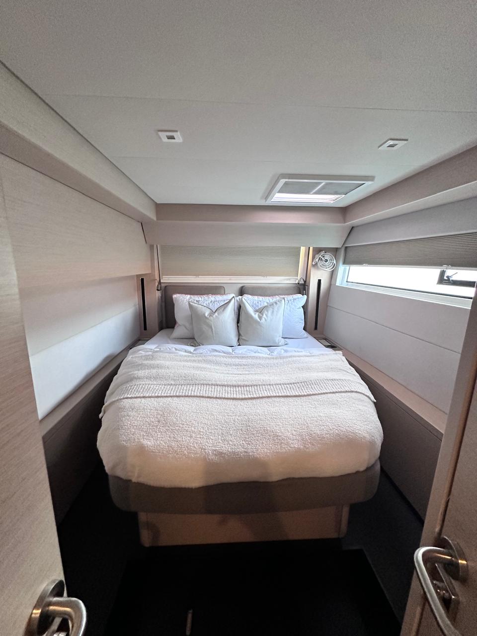 The owner's suite occupies the entire starboard hull providing unrivalled storage in a yacht of this size.