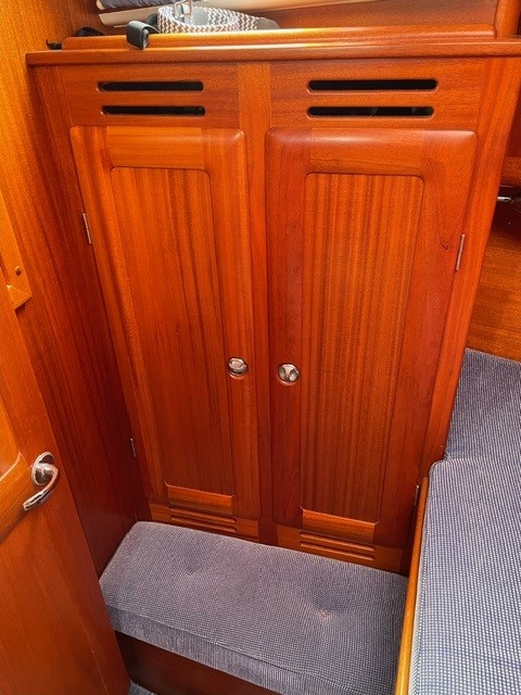 Aft cabin with wardrobe, 2 overhead lockers to port and 3 large lockers on centre line.