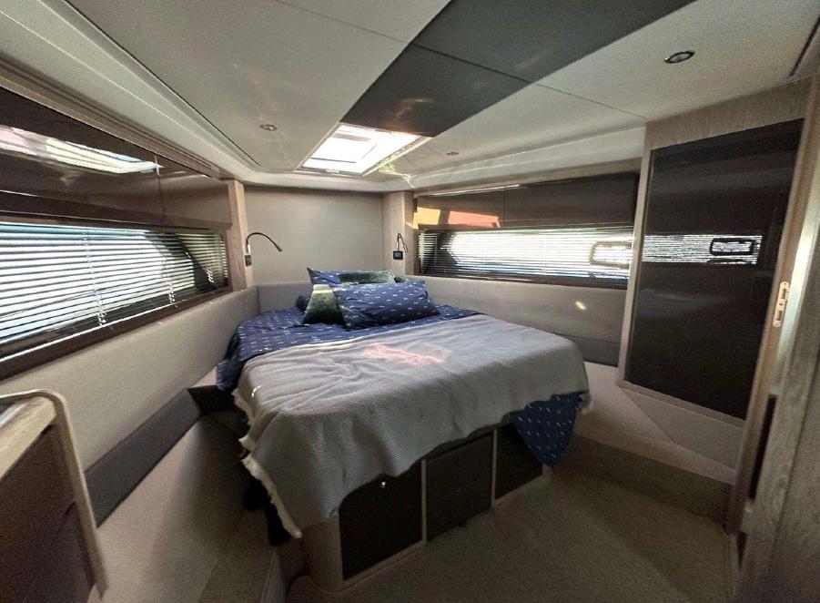 With a sleek and sporty profile, the Atlantis 51 offers an open layout with a spacious cockpit, large sunpads, and a retractable hardtop for an effortless indoor-outdoor experience. The contemporary interior features a fully equipped galley, a stylish salon, and three well-appointed cabins, including a luxurious full-beam master suite.