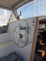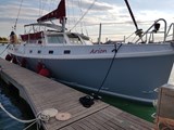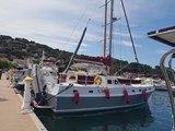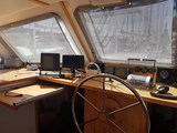 It is a unit construction in Strongal aluminum from Naval Meta shipyards. It consumes about 5 liters per hour at 7 knots and sometimes less if the wind is downwind. Its very shallow draft opens the interior channels, moreover ballasted at the bottom of the hull, it is certified according to the category of construction A which authorizes it the great oceanic cruising. The secure central cockpit allows for a very large owner's cabin at the rear. The kitchen and dining area are in the deck saloon, which gives a perfect view on the outside. The large and spacious forward cabin berths and navigator's berth are down below.