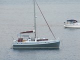 VOILE DE CAP : Delta Voiles. Pour limiter la navigation sur l’ancre au mouillage par fort vent, il a été développé un system unique de deux voiles jumelles (3 m2) (formant un tétraèdre) montées sur un emmagasineur qui est gréé sur le pataras tribord