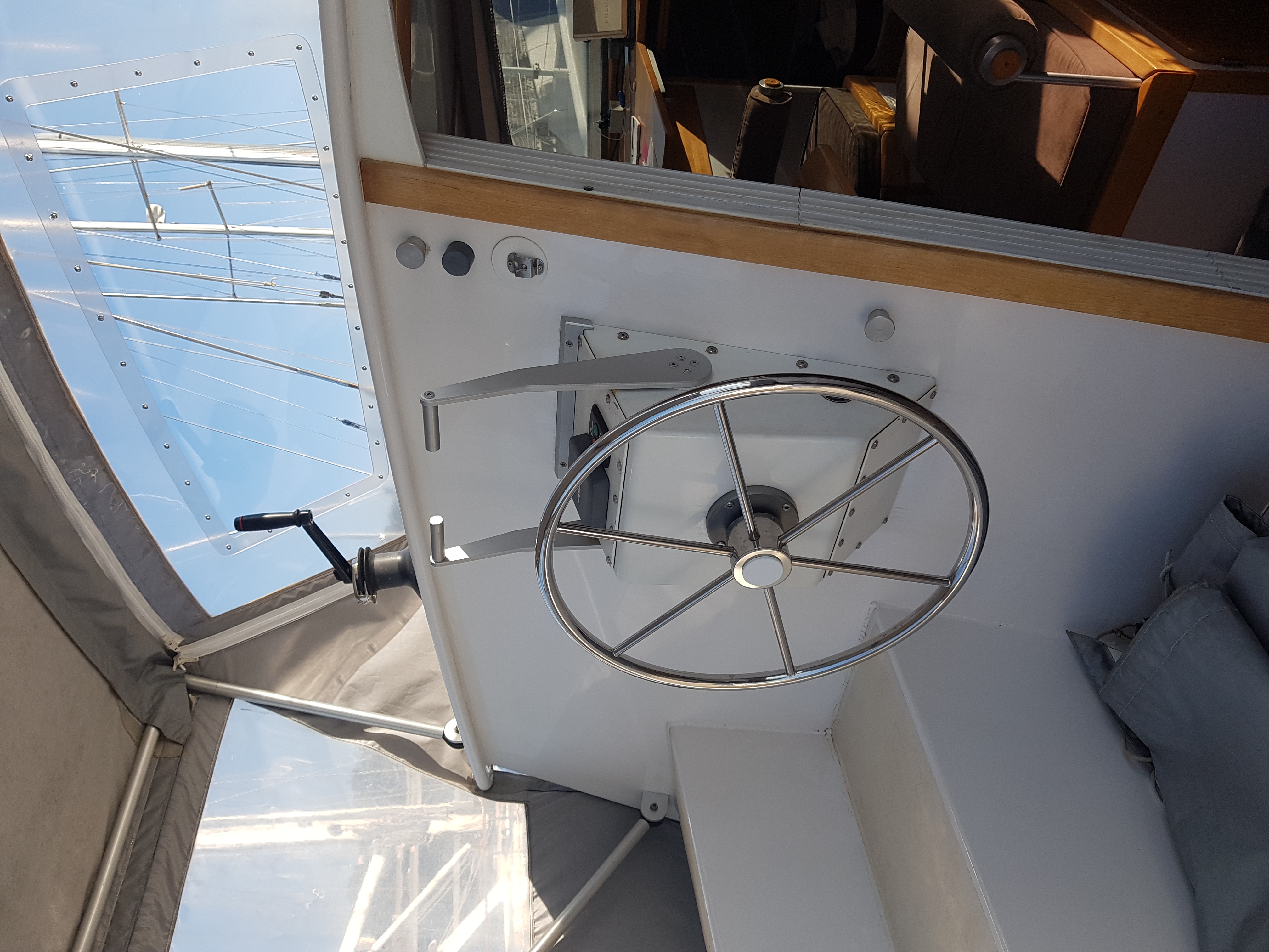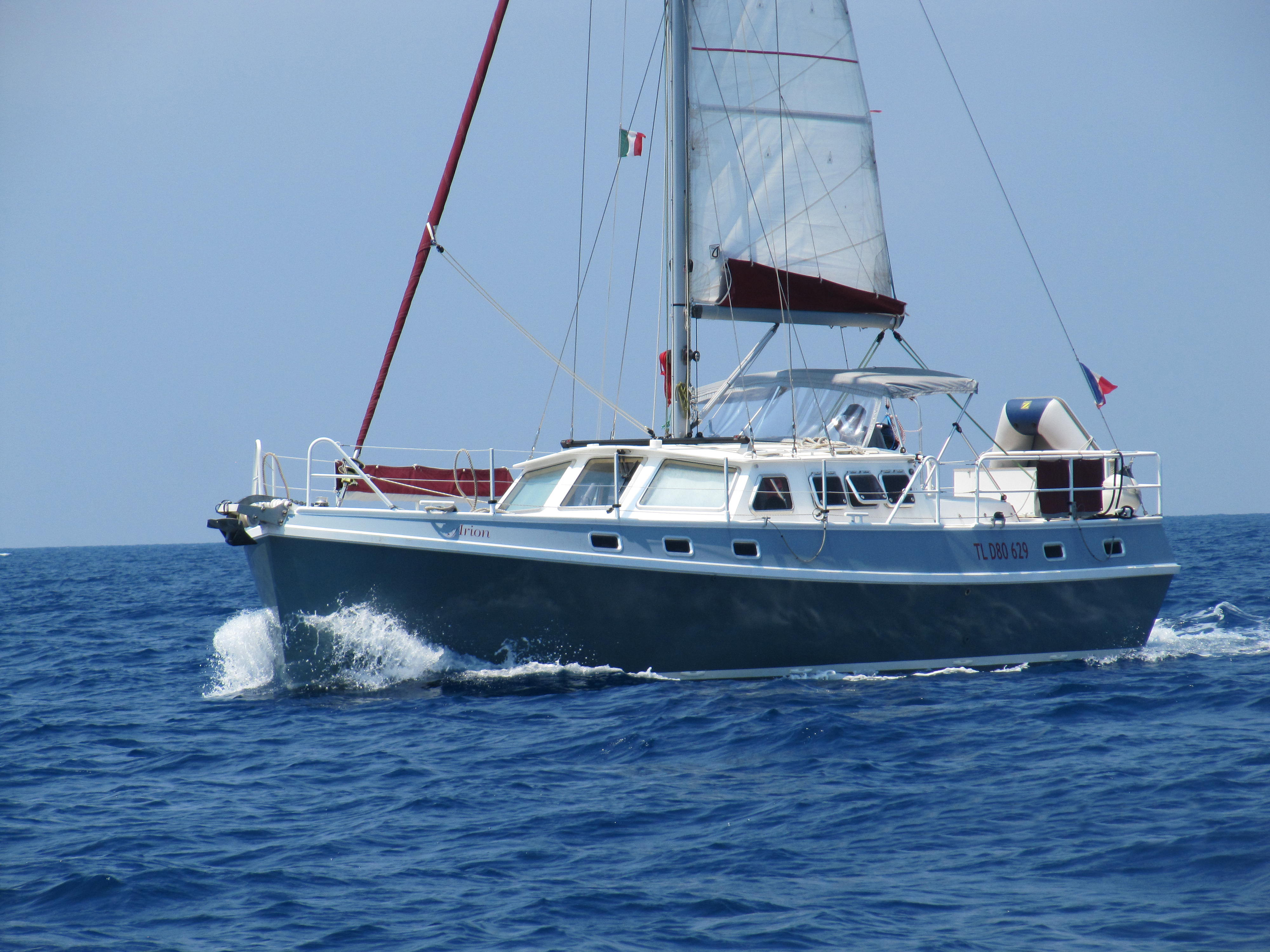 The joint use of the two modes of propulsion, sail/motor, by the play of the two different moments of inertia gives this very defended boat a remarkable sea keeping.