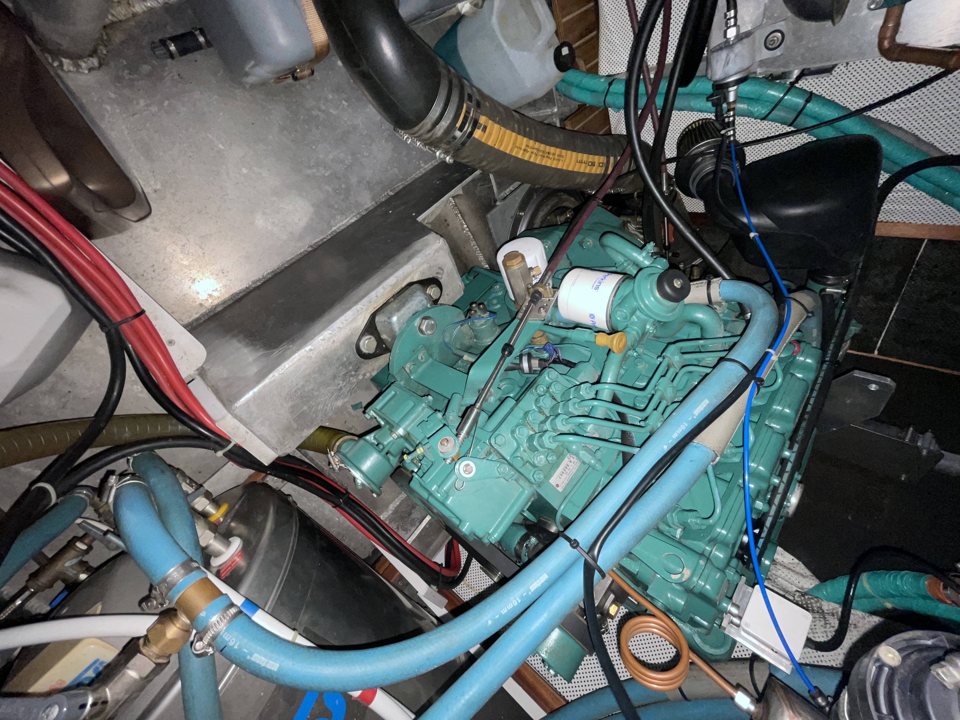 Deux moteurs diésel Volvo D2-75A turbo compressés couplés à des Sail drives. Ce choix a été fait entre autre pour obtenir un minimum de vibrations.