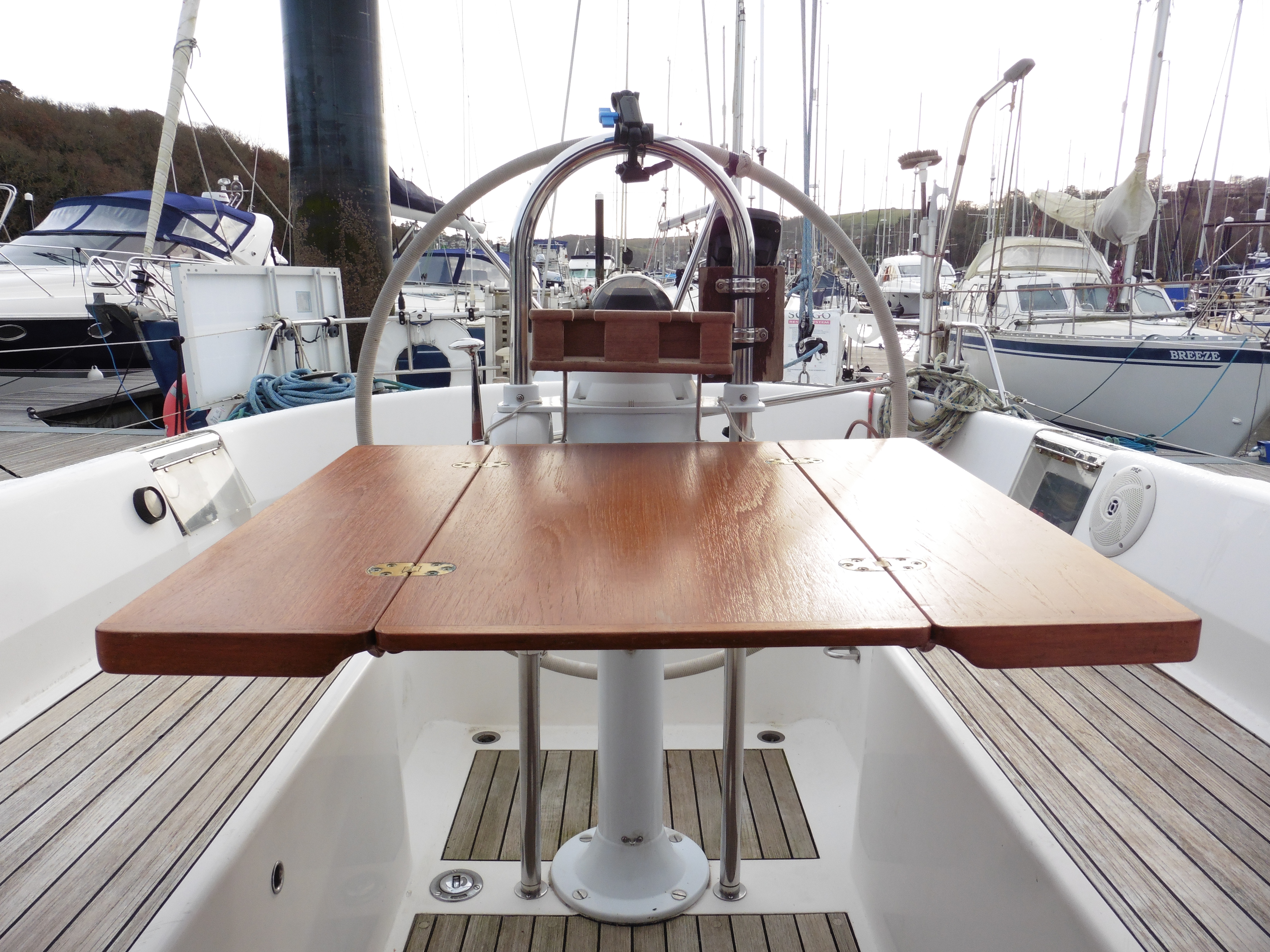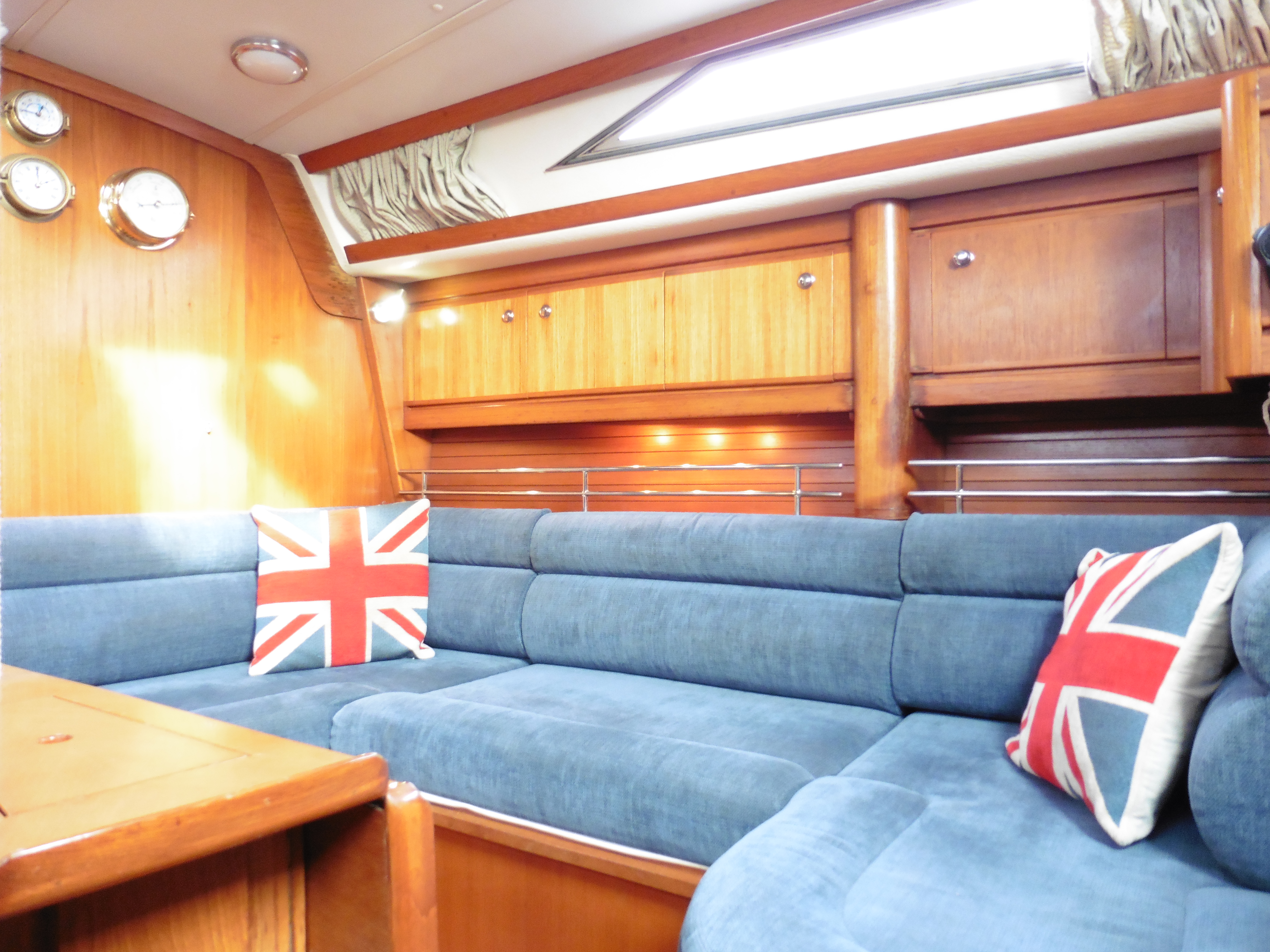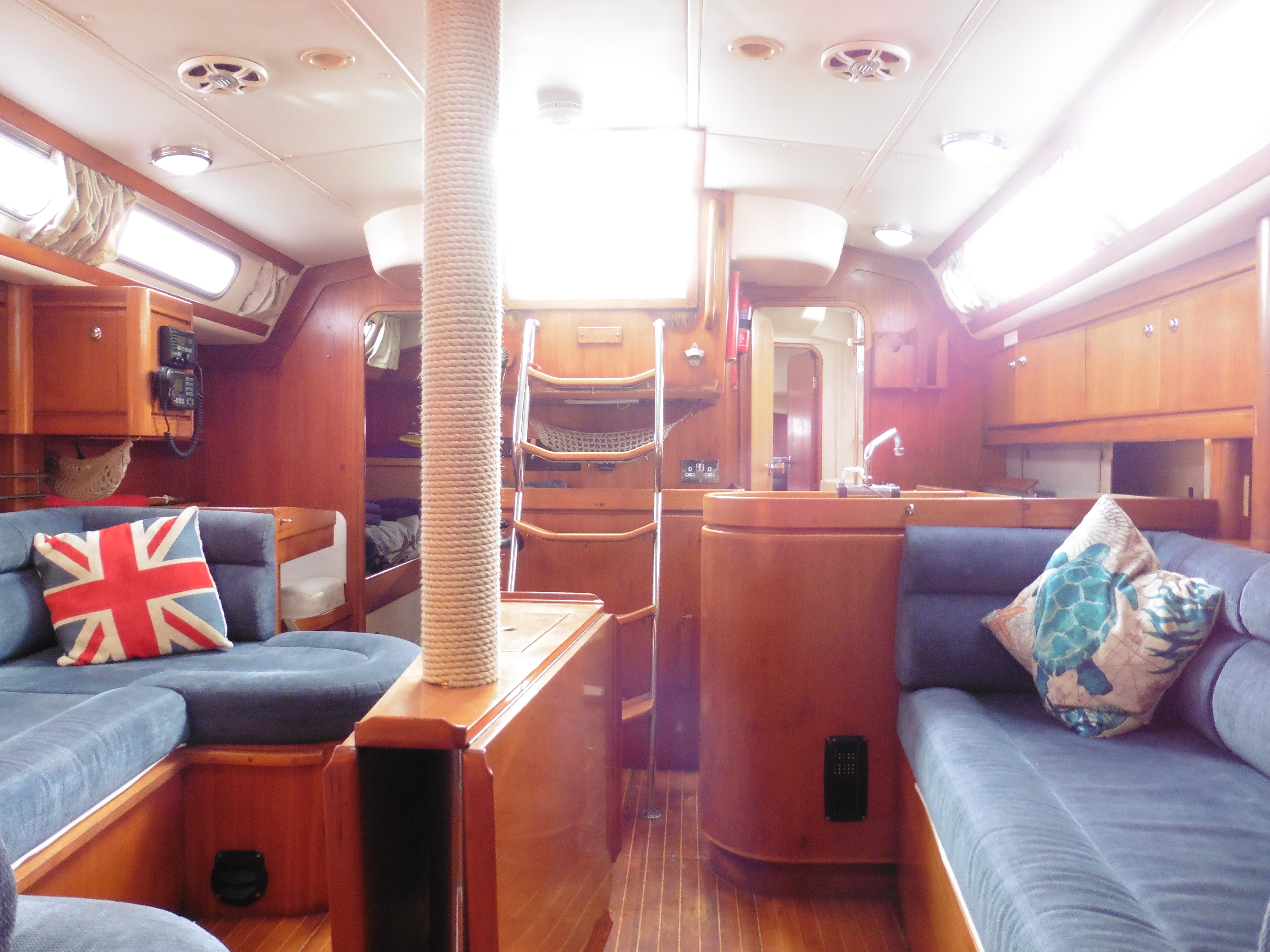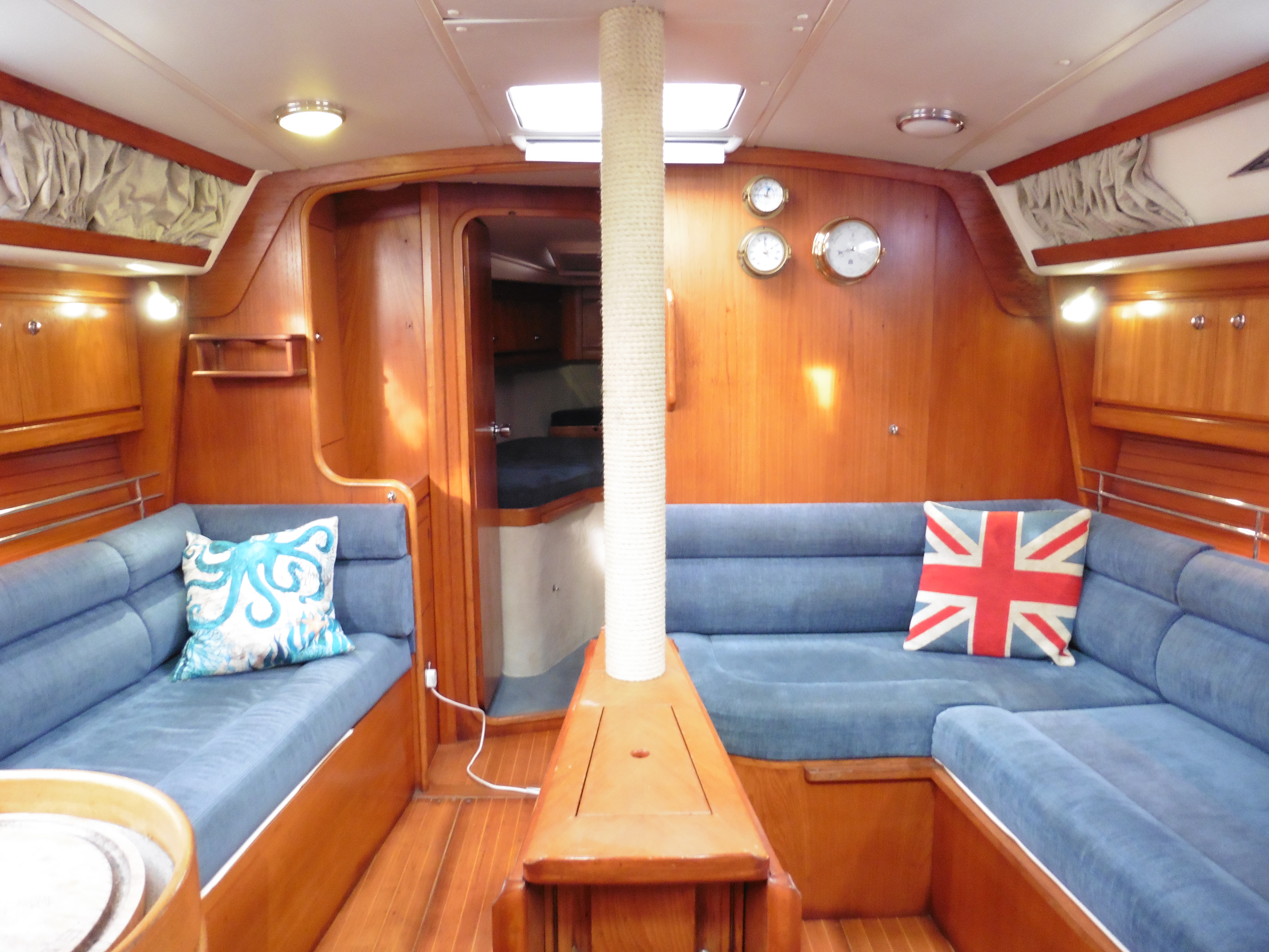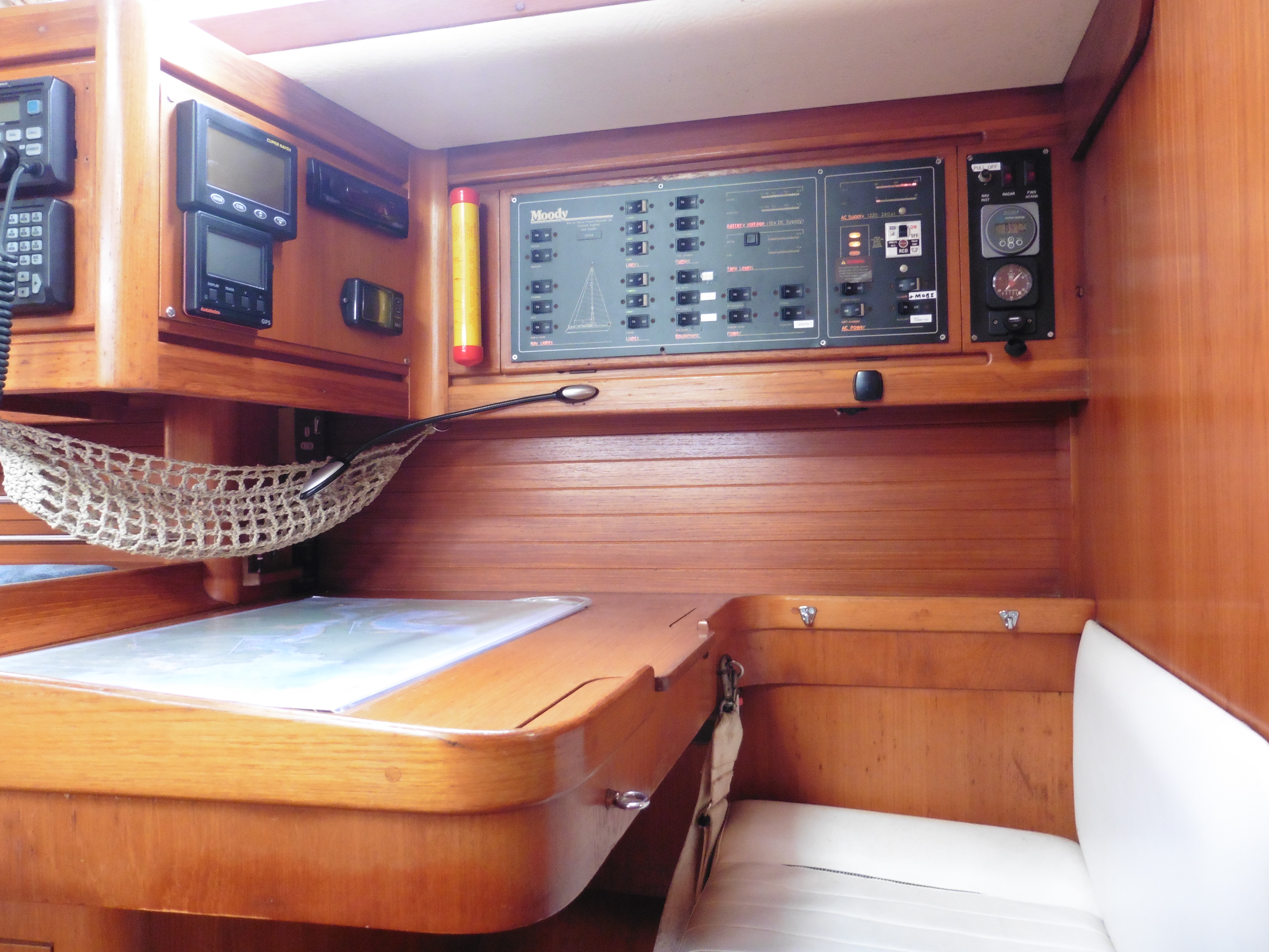 The Moody 38 was designed by Bill Dixon, a partnership with Moody Yachts that started in the early eighties. As with any centre cockpit yacht there is a very secure feeling when sailing, plenty of protection from the elements but the ability to access and move around the wide decks is easily achieved. The interior is spacious and comfortable with ample storage around every part of the boat, the large aft master with central island bed is impressive and the saloon is a generous size with large table and seating. These are well regarded as strongly built yachts that can handle coastal cruising as well as ocean crossings.