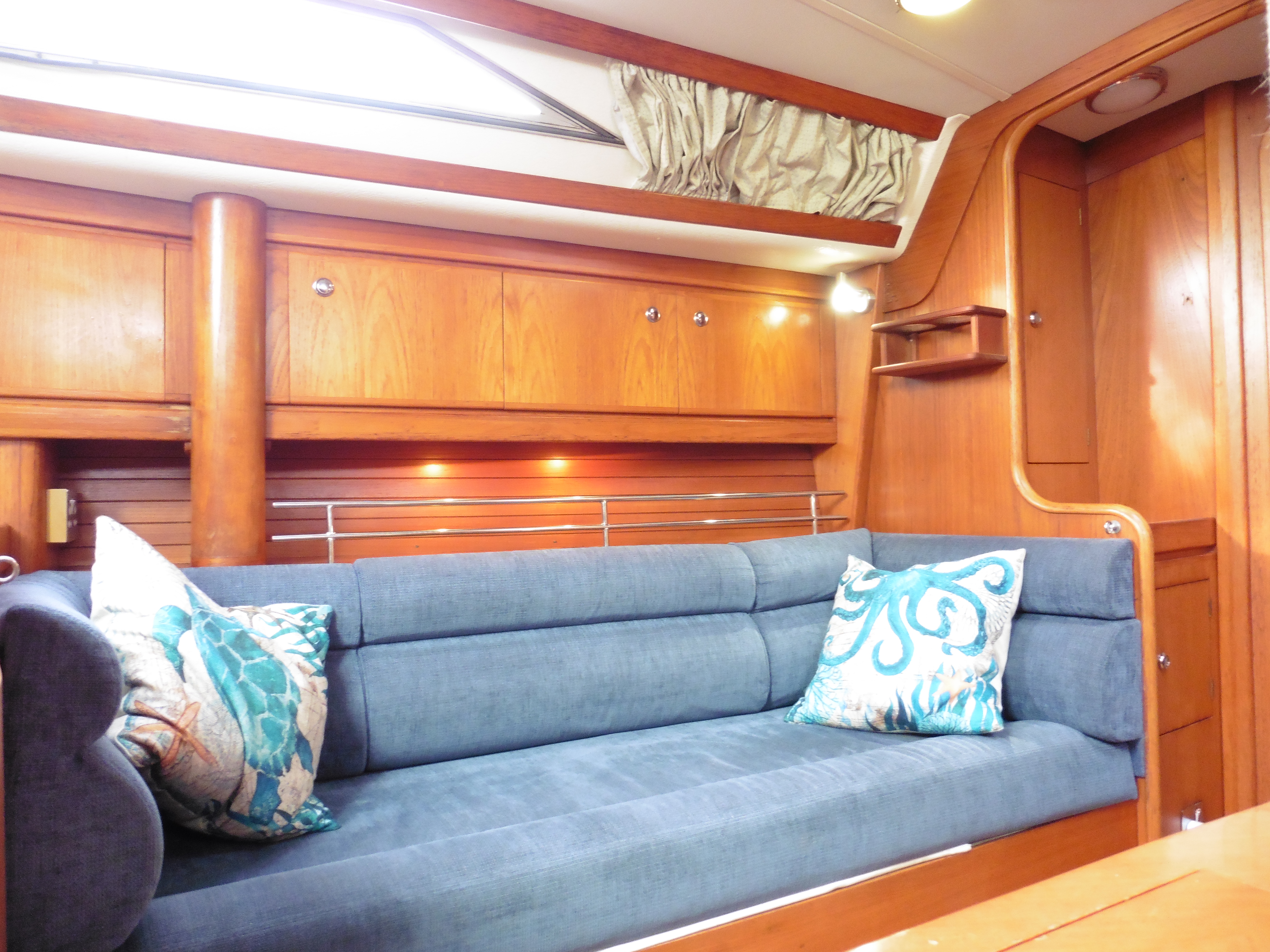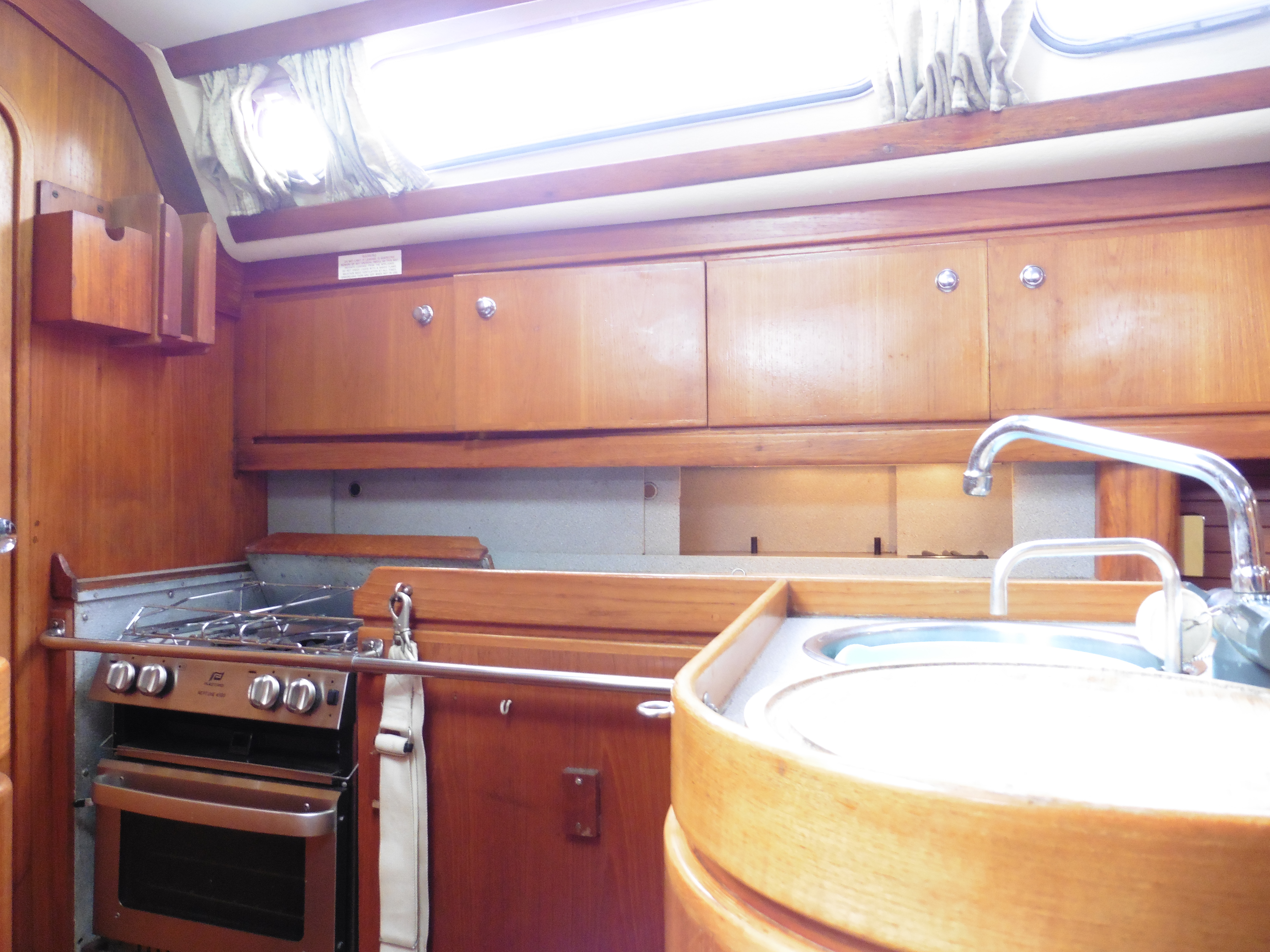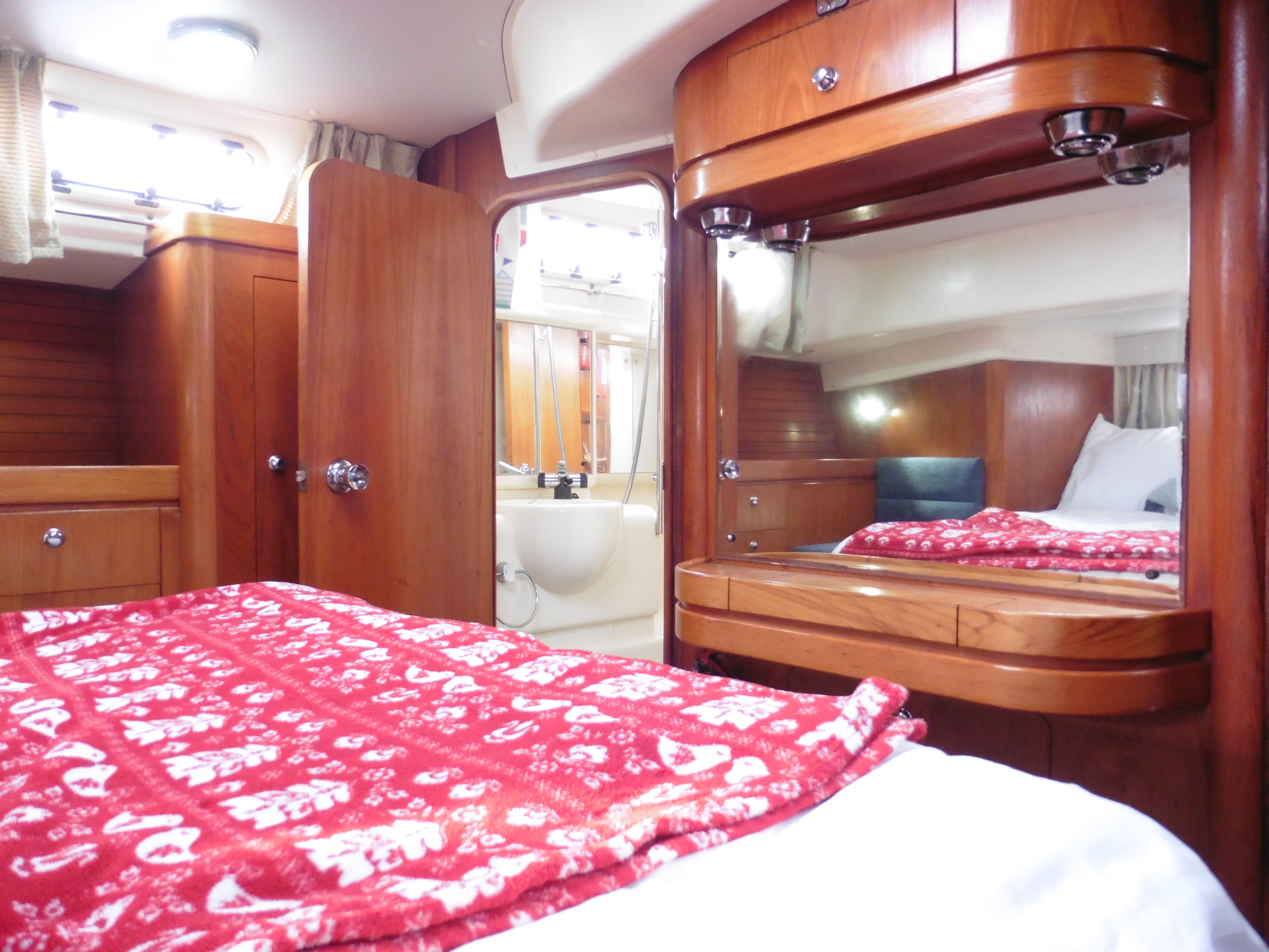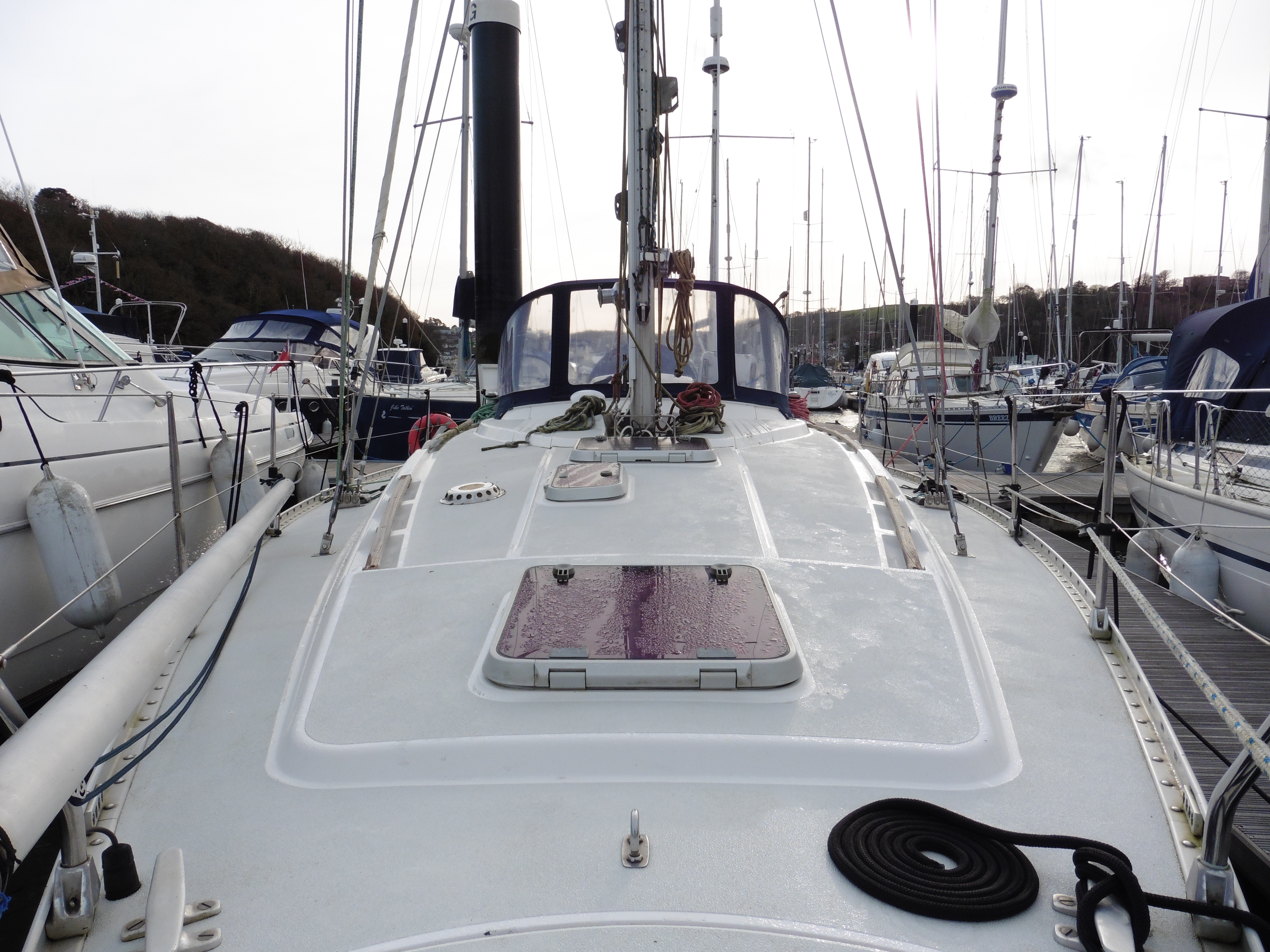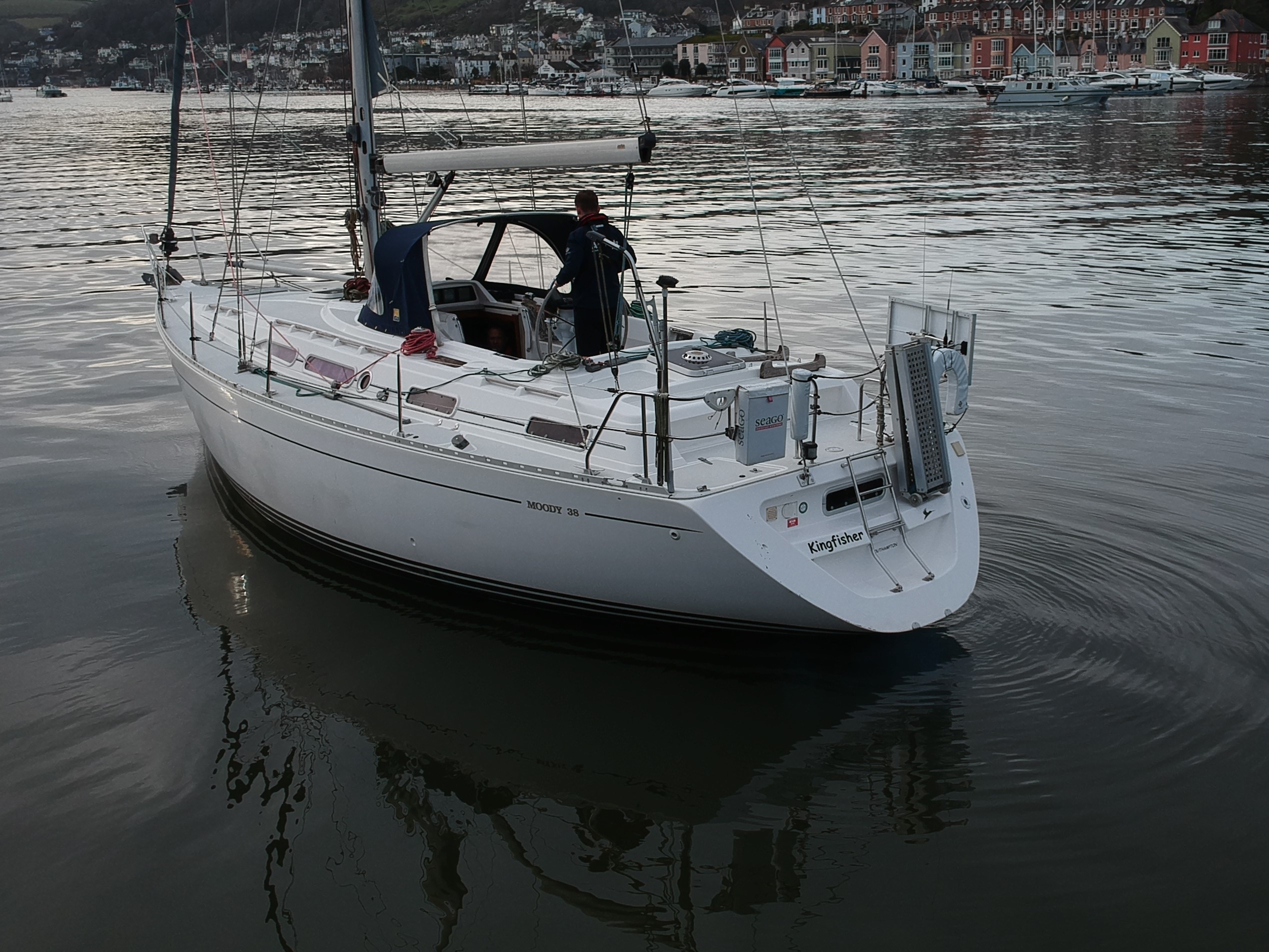 The Moody 38 was designed by Bill Dixon, a partnership with Moody Yachts that started in the early eighties. As with any centre cockpit yacht there is a very secure feeling when sailing, plenty of protection from the elements but the ability to access and move around the wide decks is easily achieved. The interior is spacious and comfortable with ample storage around every part of the boat, the large aft master with central island bed is impressive and the saloon is a generous size with large table and seating. These are well regarded as strongly built yachts that can handle coastal cruising as well as ocean crossings.