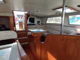 Saloon has large U shaped seating to port with range of lockers on starboard containing a cocktail cabinet, and additional storage space for entertainment centre. Starboard side lower helm station with a double seat.