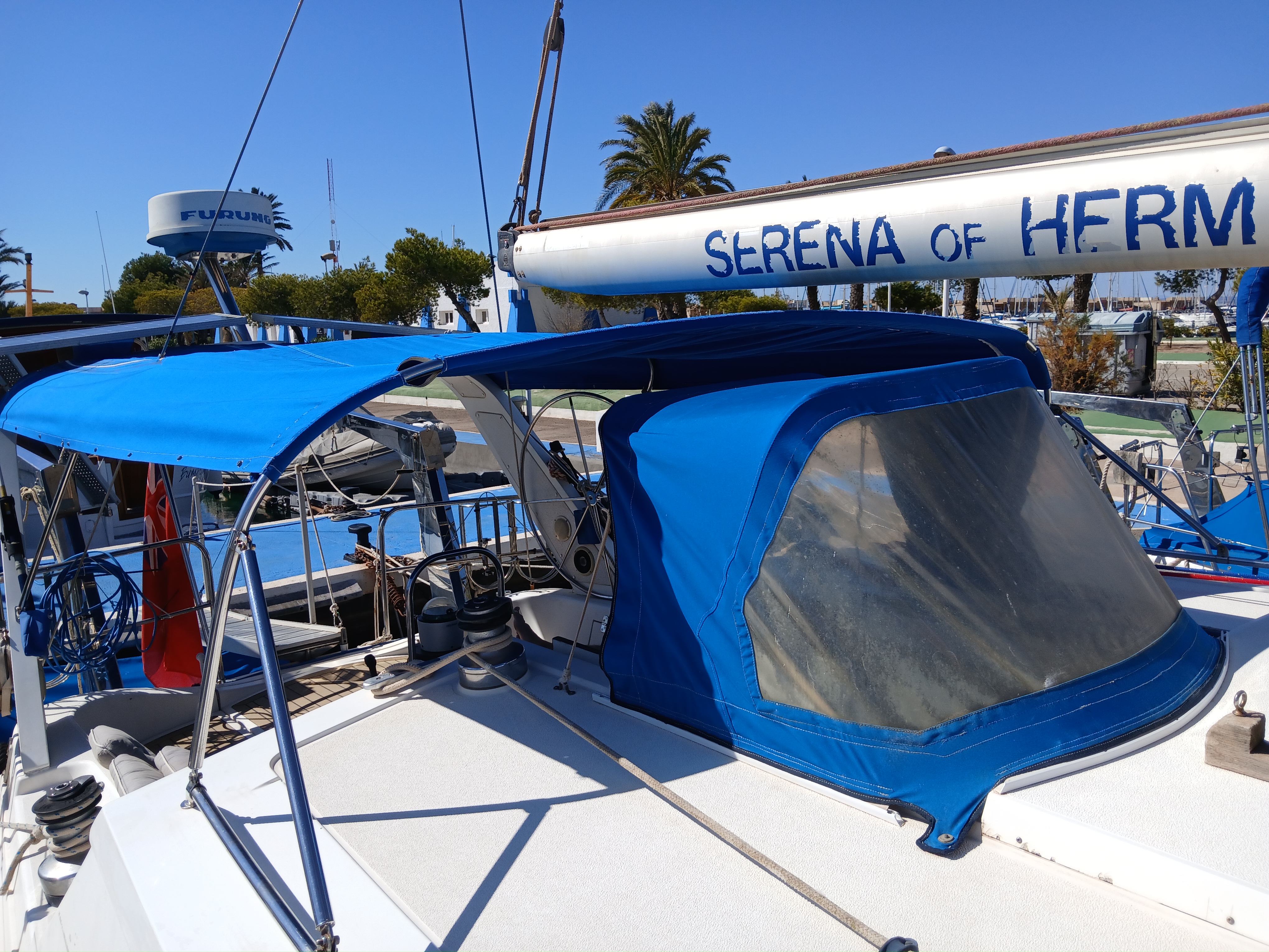 Serena of Herm is a deck saloon with a clean, low profile exterior, designed by Bill Dixon and built by Marine Projects.