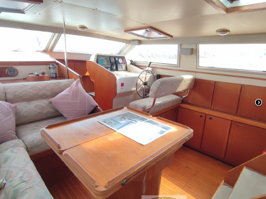 the saloon area has excellent all round visibility from both the interior helm station and the