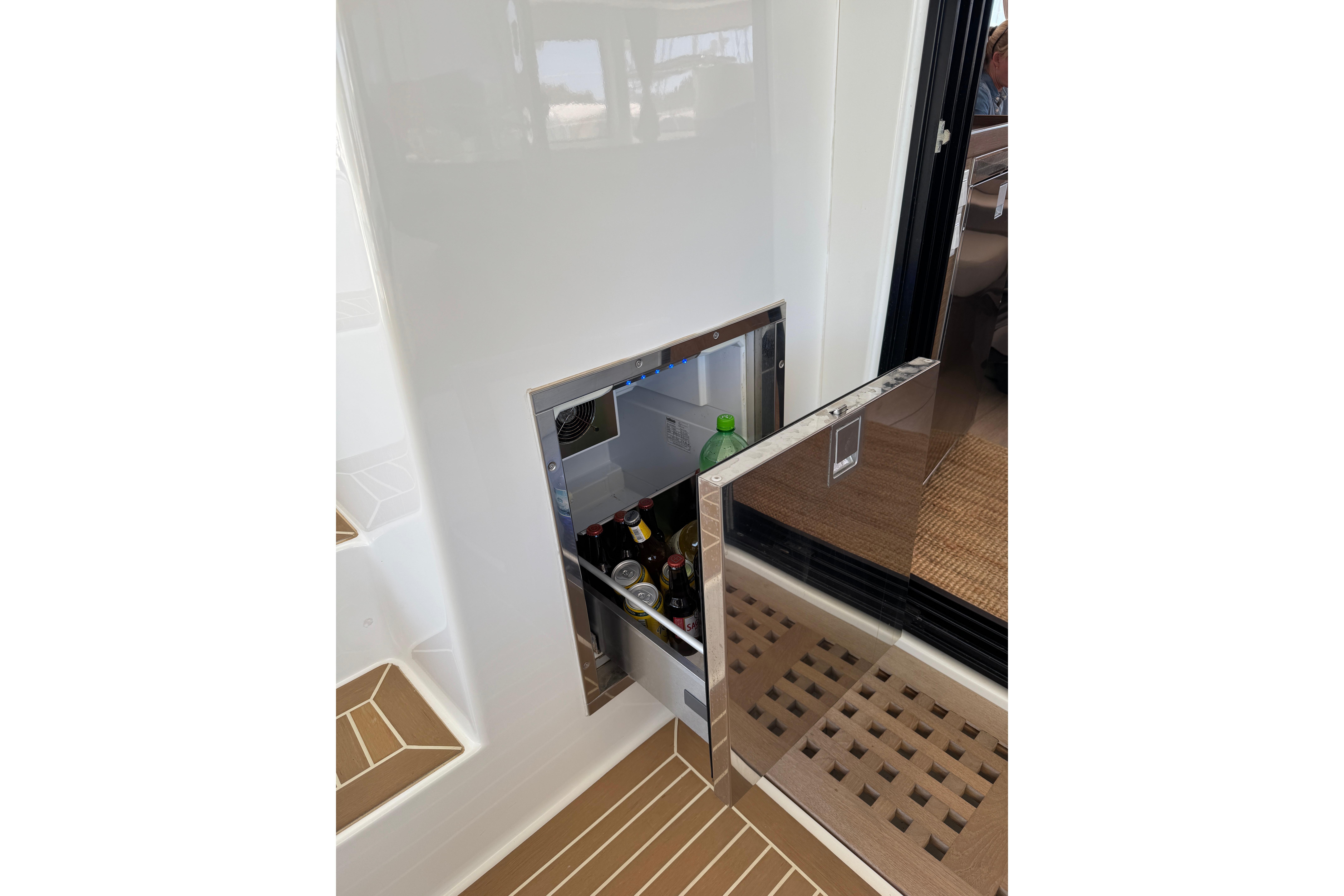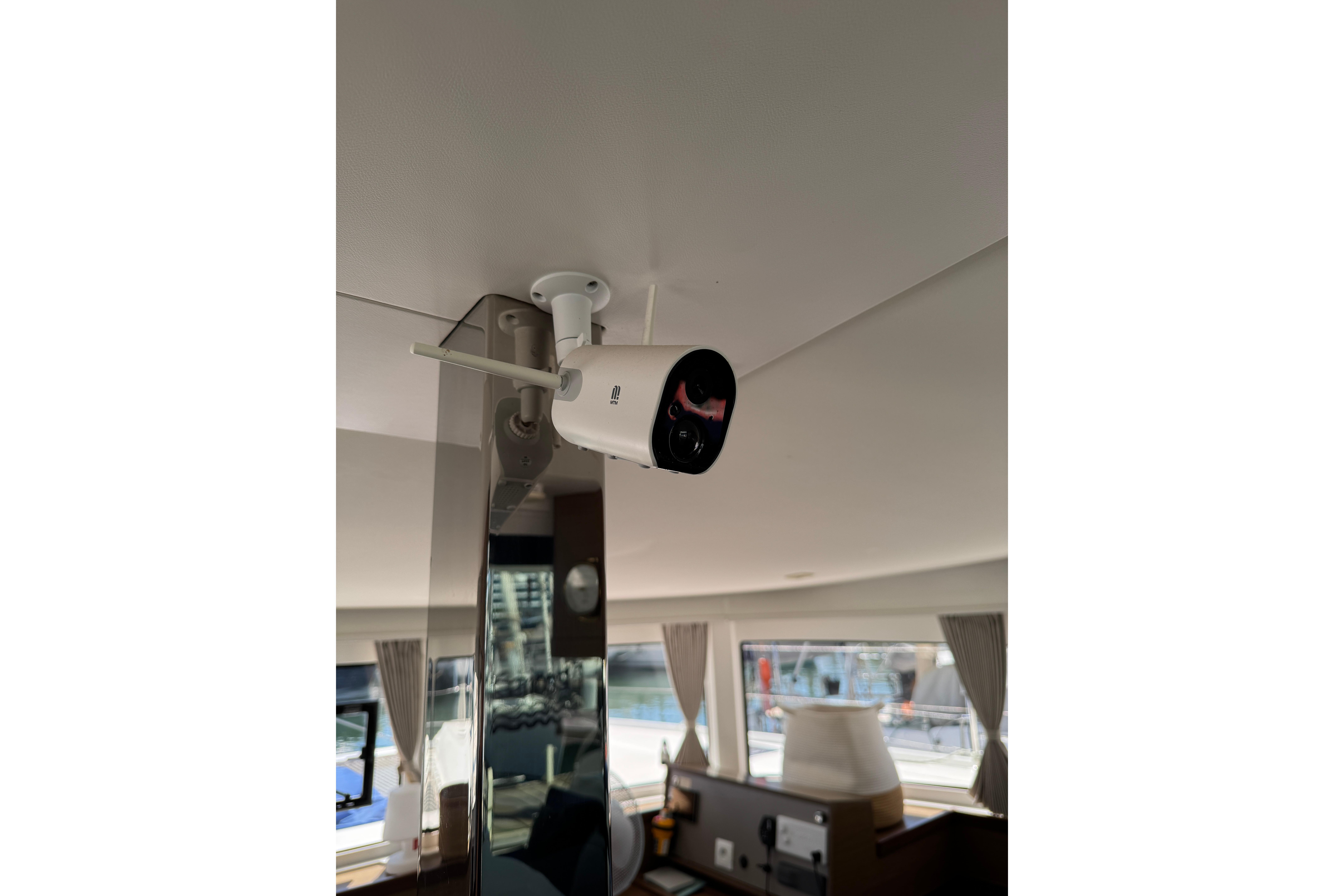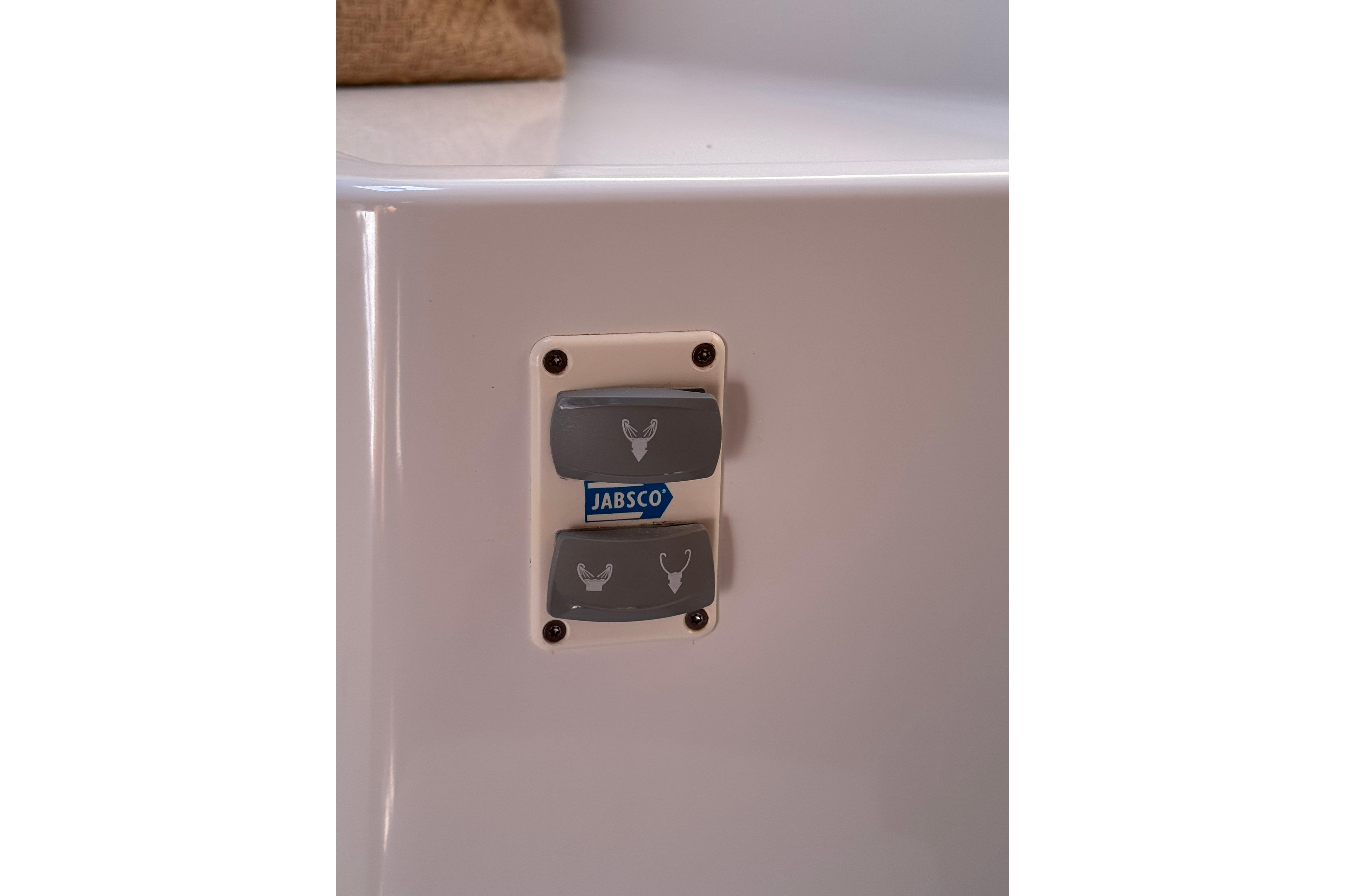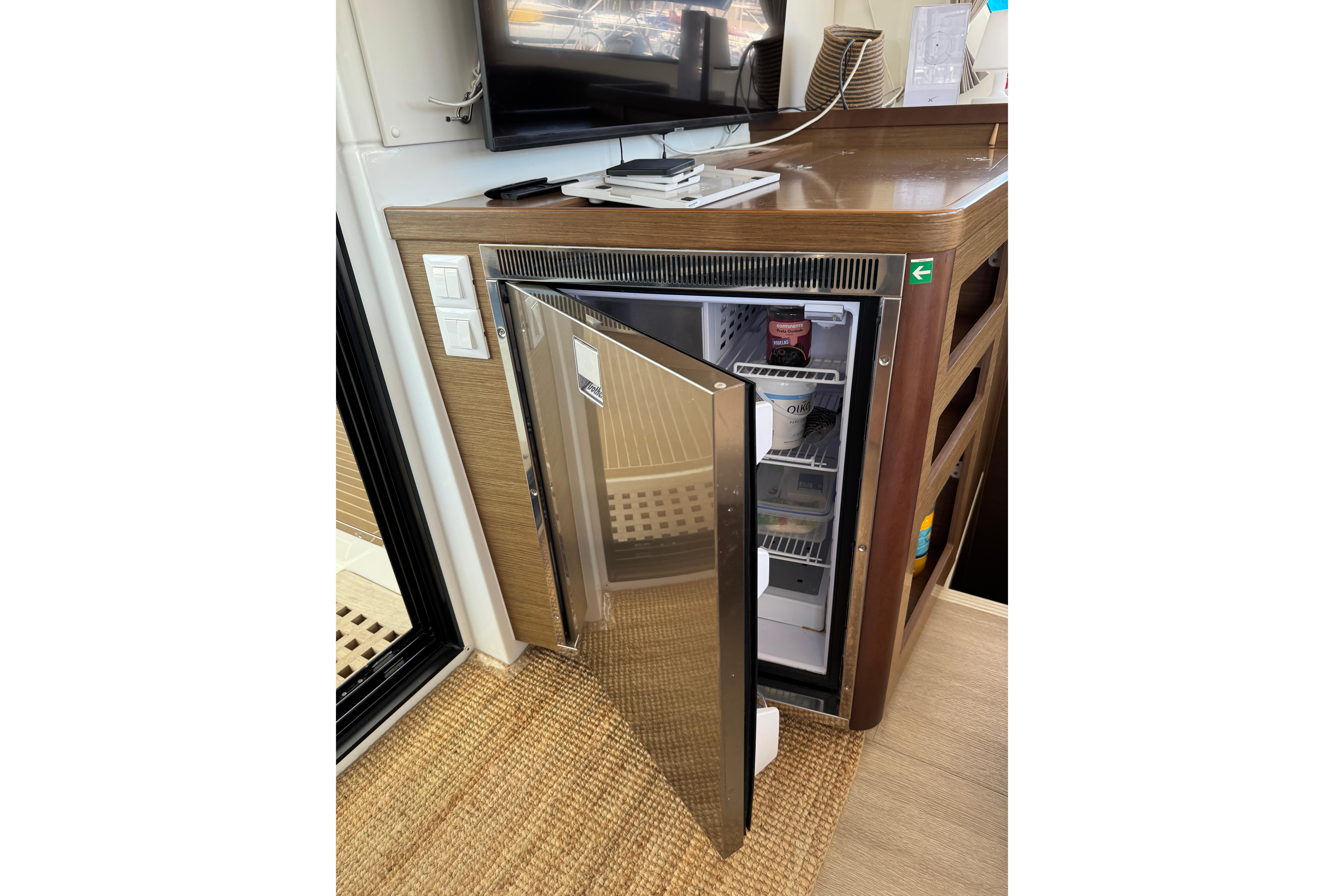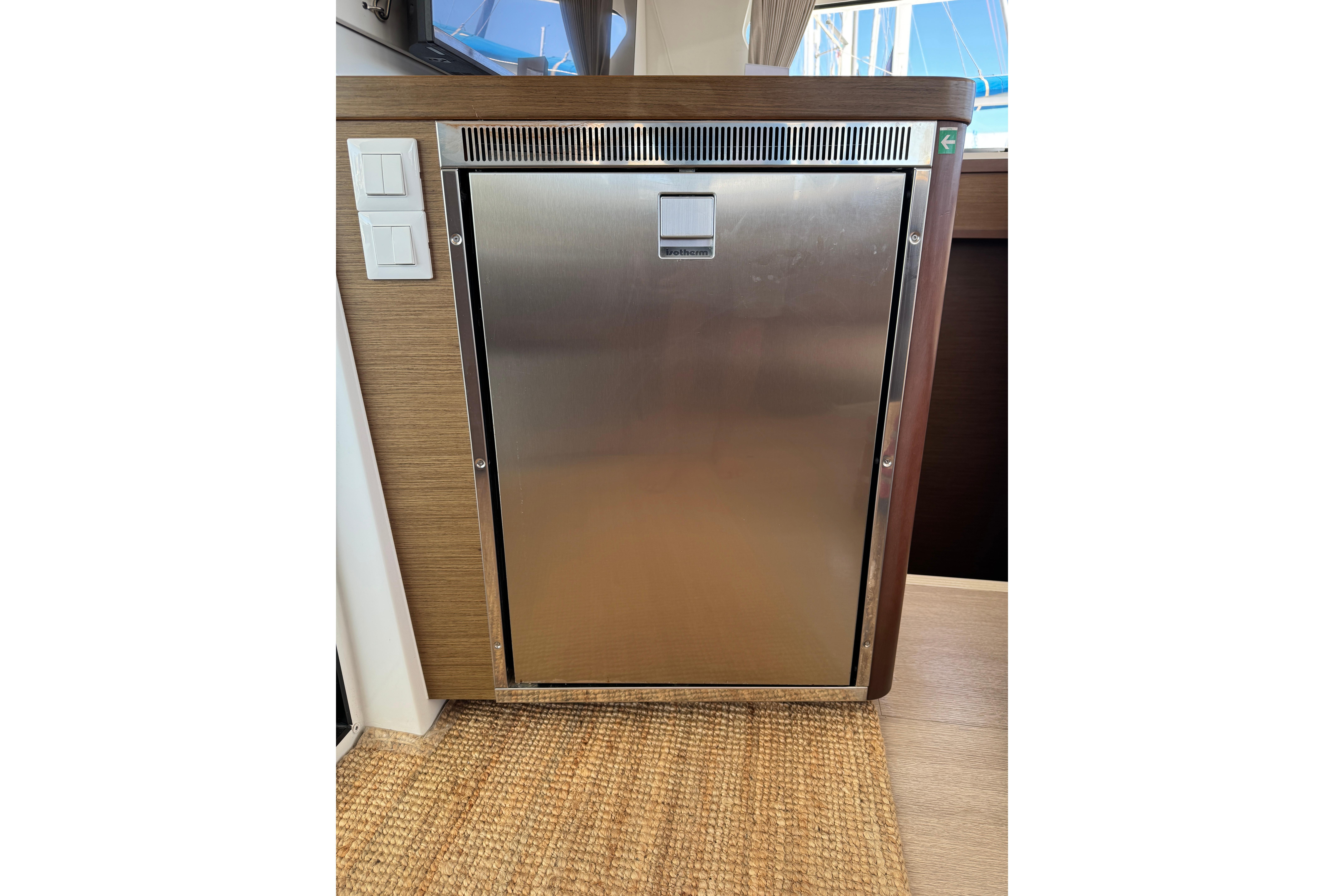 Dessalator watermaker, 100 L/h Refrigeration: 2 × fridges (galley + cockpit), 1 × freezer (galley) Gas stove (3 burners + oven) Washing machine (Candy Smart) Rigid bimini with side enclosures Full exterior cushions (anthracite) Owner’s suite with desk, wardrobes, private bathroom Fans in cabins (2024) 3 electric toilets, switchable fresh/salt water Slatted bed bases