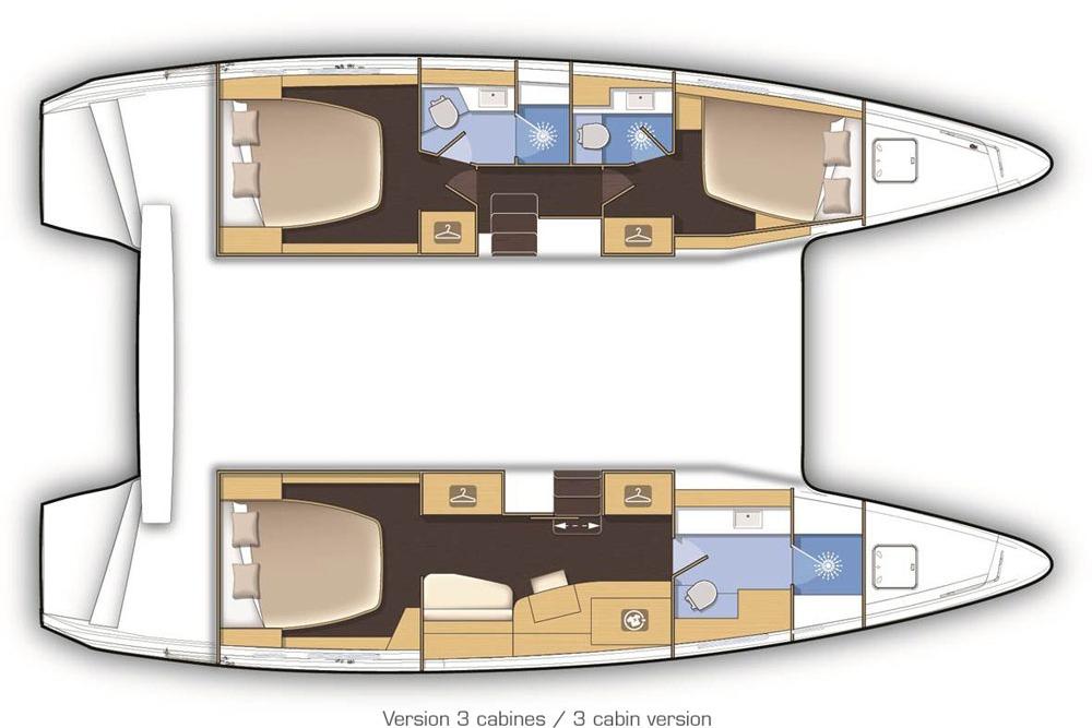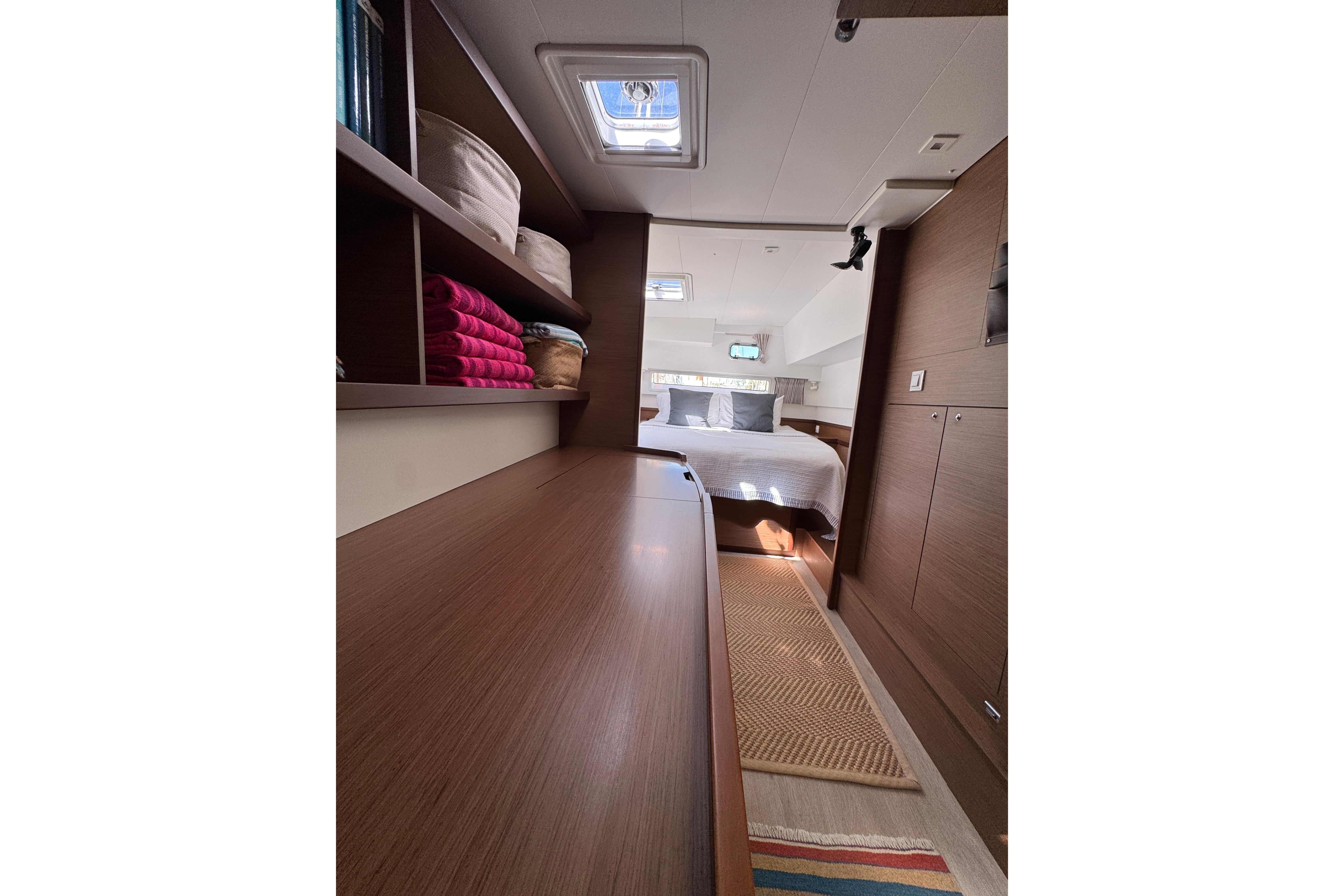 This Lagoon 42 Owner’s Version is meticulously maintained and in perfect condition! An absolute top-class yacht equipped with everything you need to sail in comfort and style. The owner’s version gives you a whole pontoon for a spacious private suite! The suite is located on the starboard side with the suite door by the stairs. The area is bright and airy with a comfortable double bed in the aft that continues to an open space containing a working area with a desk, plenty of storage and a washing machine. In the front part of the pontoon, there is a big bathroom with an electric toilet, washing basin, a separate shower and plenty of storage space. The portside pontoon consists of 2 double bed cabins at each end with with good storage and its own private head. The spacious and generous areas are ideal for family sailing and for inviting friends along.