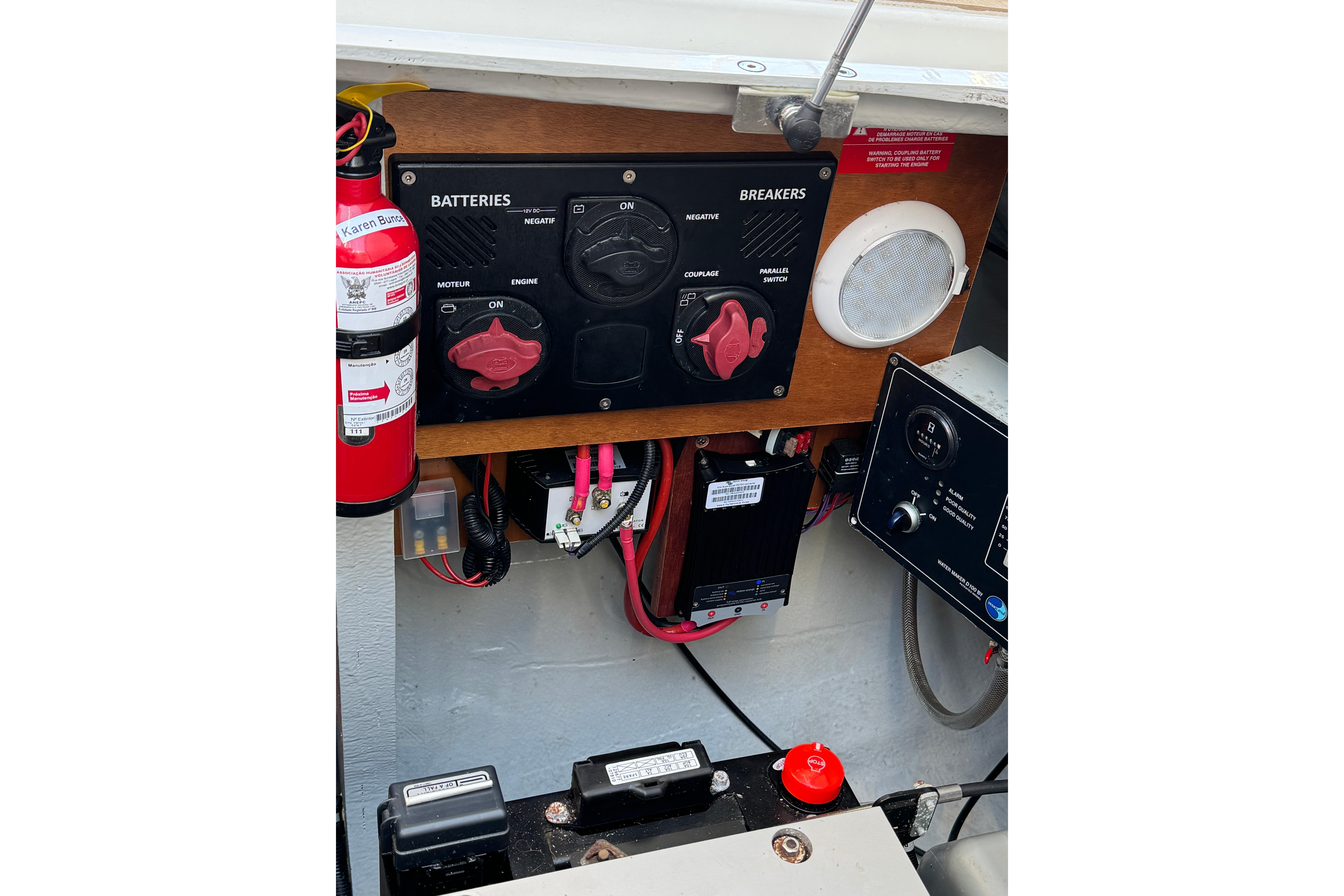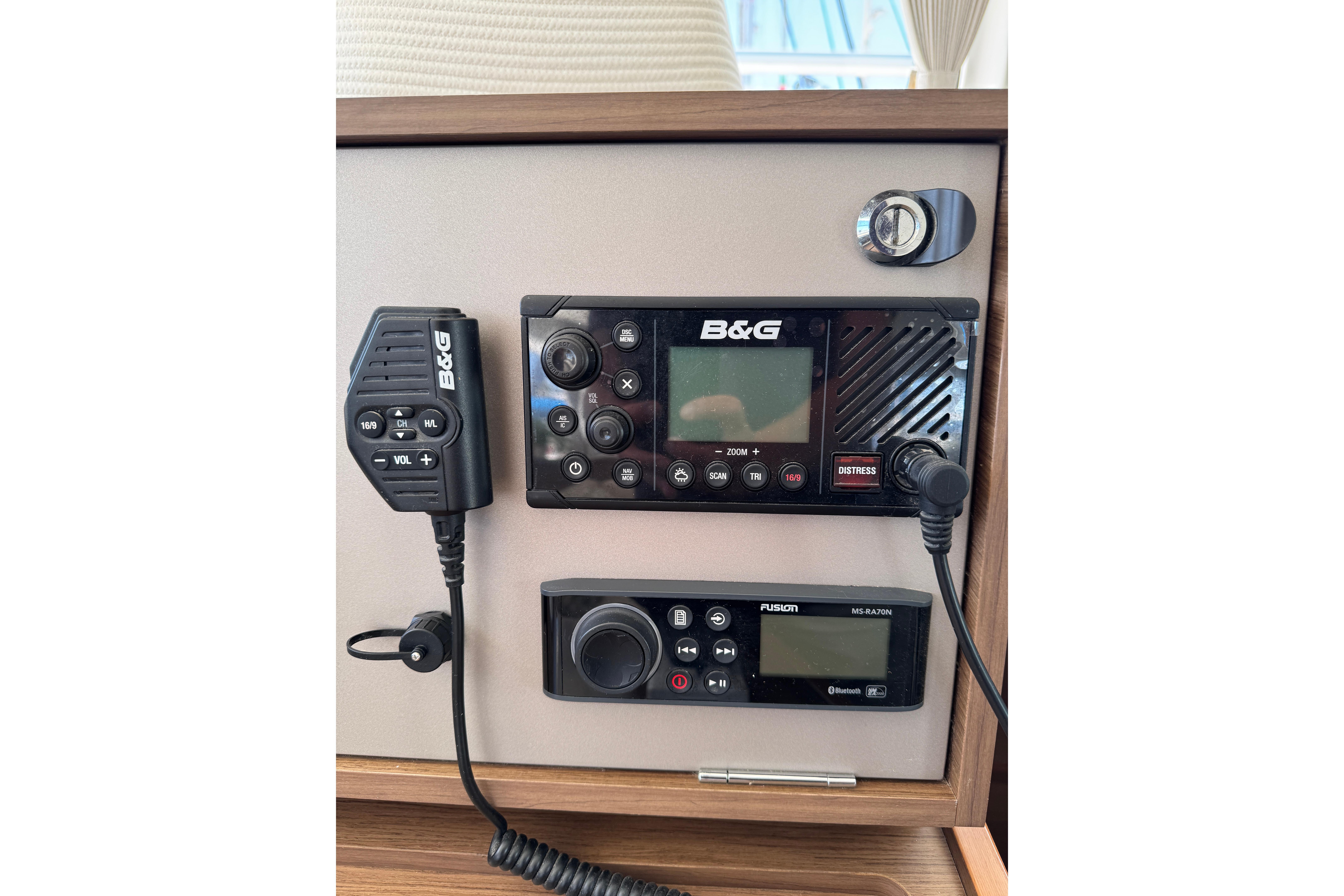 B&G; Zeus³ 12" chartplotter (helm) B&G; autopilot with hydraulic assist B&G; radar B&G; VHF with remote handset + handheld VHF paired to station AIS, wind, log, depth sensors Fusion stereo + TV in saloon Iridium Go! satellite comms