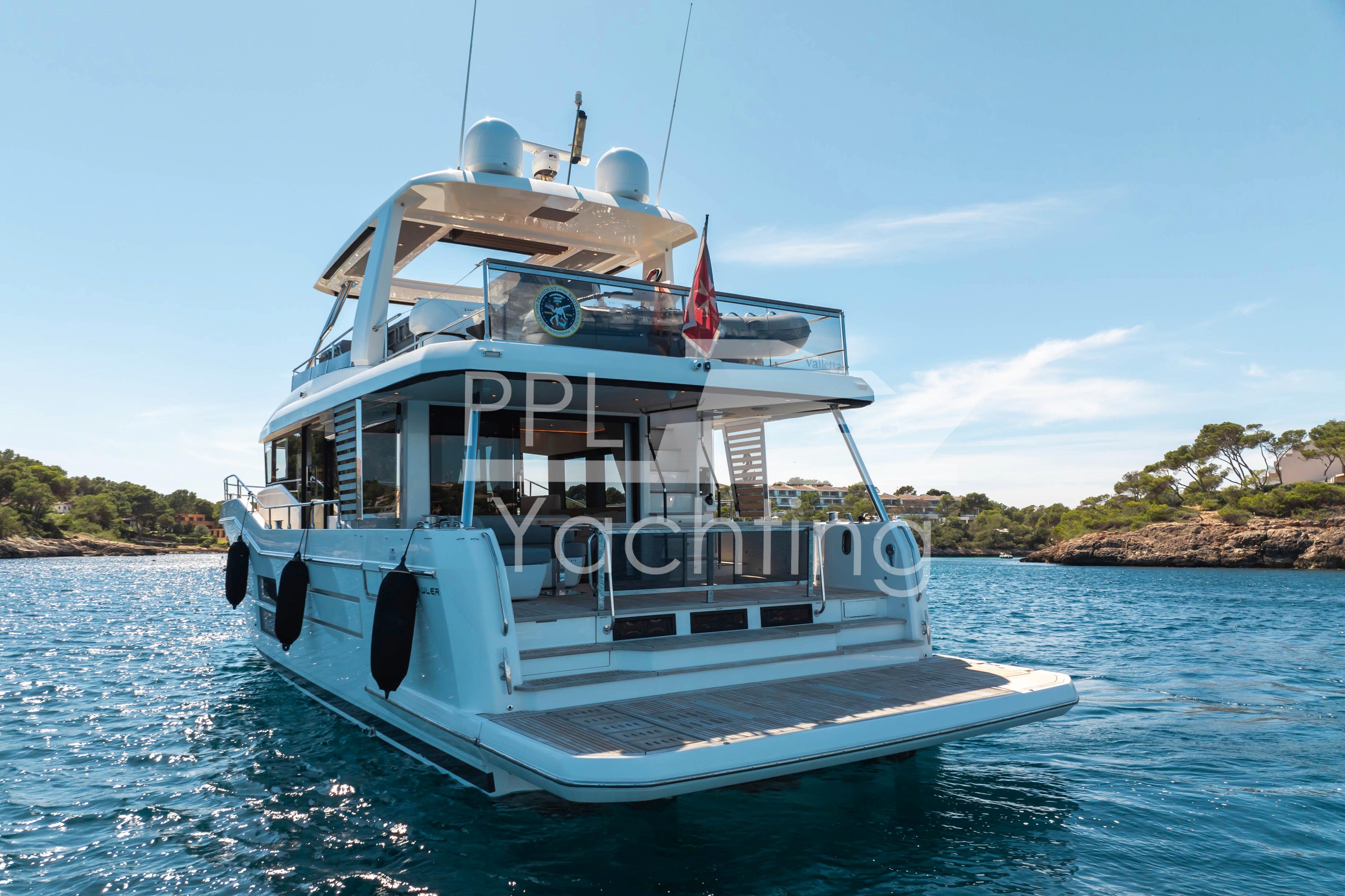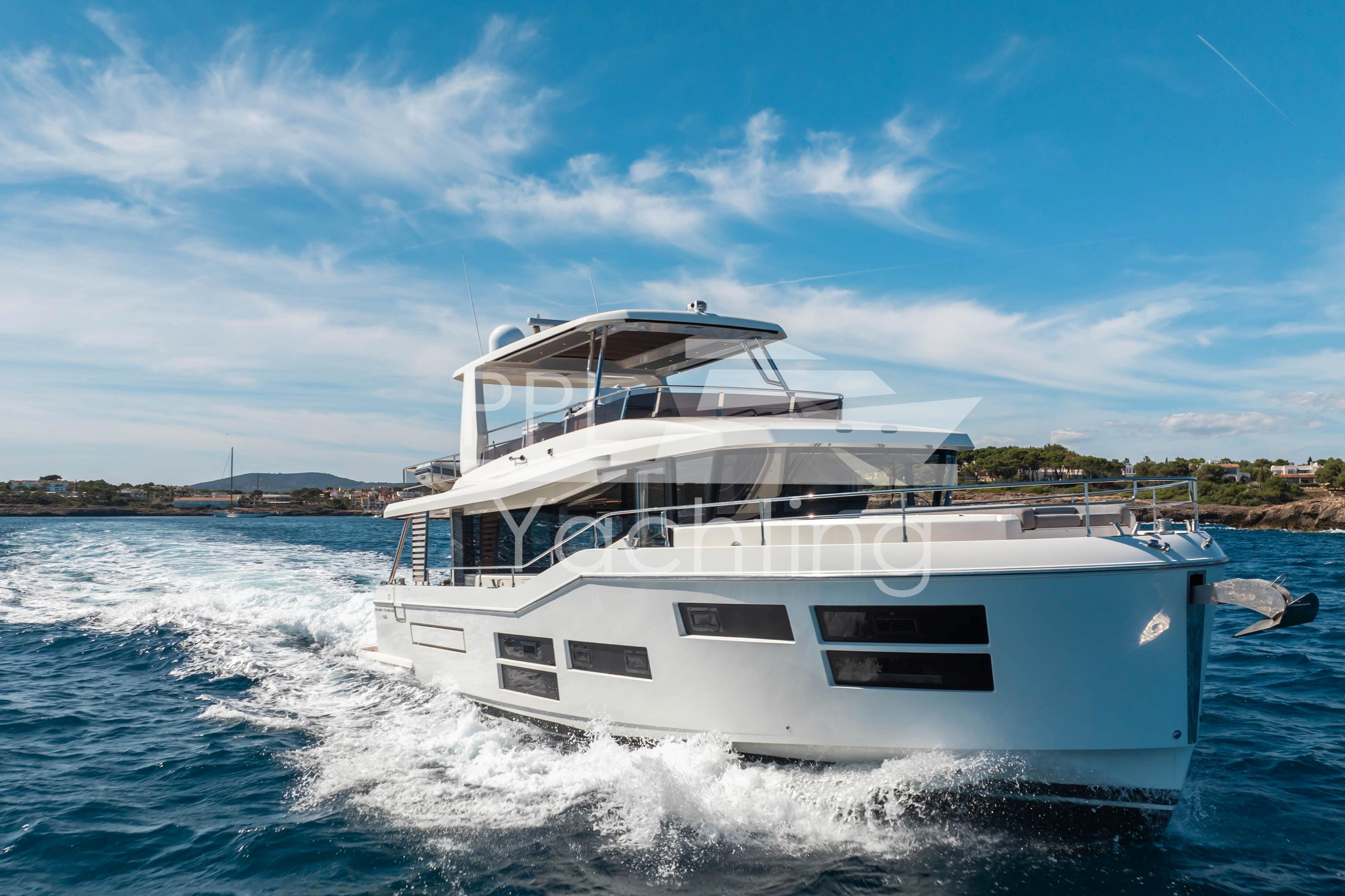 As new Beneteau Grand Trawler 62 from 2023, first hand (private use), Maltese flag, EU-VAT not paid (net price) with berth in Mallorca. This MY is equipped with the MAN i6-730 diesel engines, each with 730 HP and shaft drive, as well as a bow and stern thruster, making maneuvering a push-over. With a comfortable cruising speed of around 9kn, a maximum range of over 1,000nm is achieved, the maximum speed is approx. 20kn.