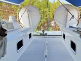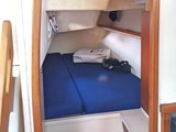Forecabin: Double berth with foam mattresses over scandi flex battens, removable support structure to reconfigure for racing. Reading lights and fan.