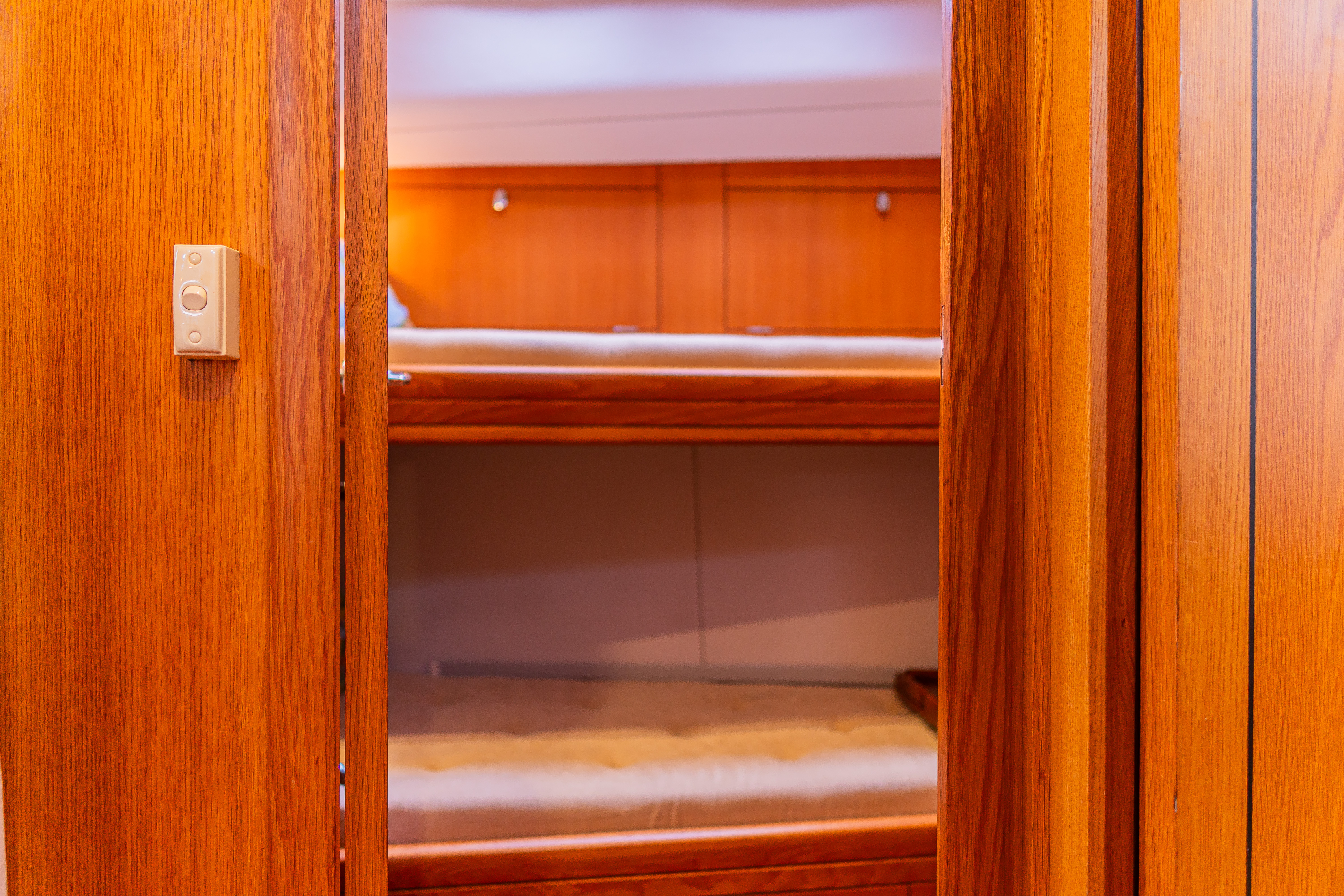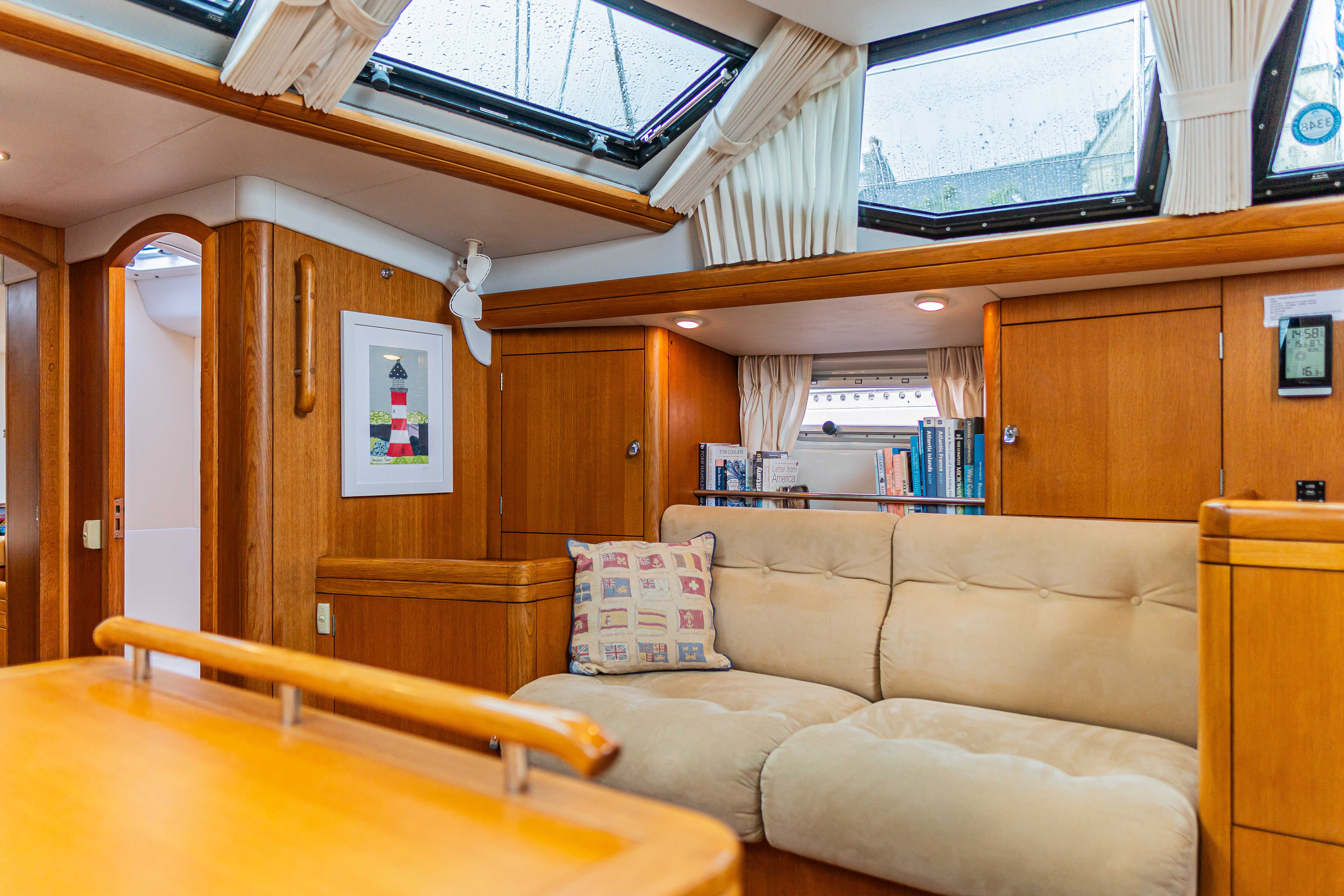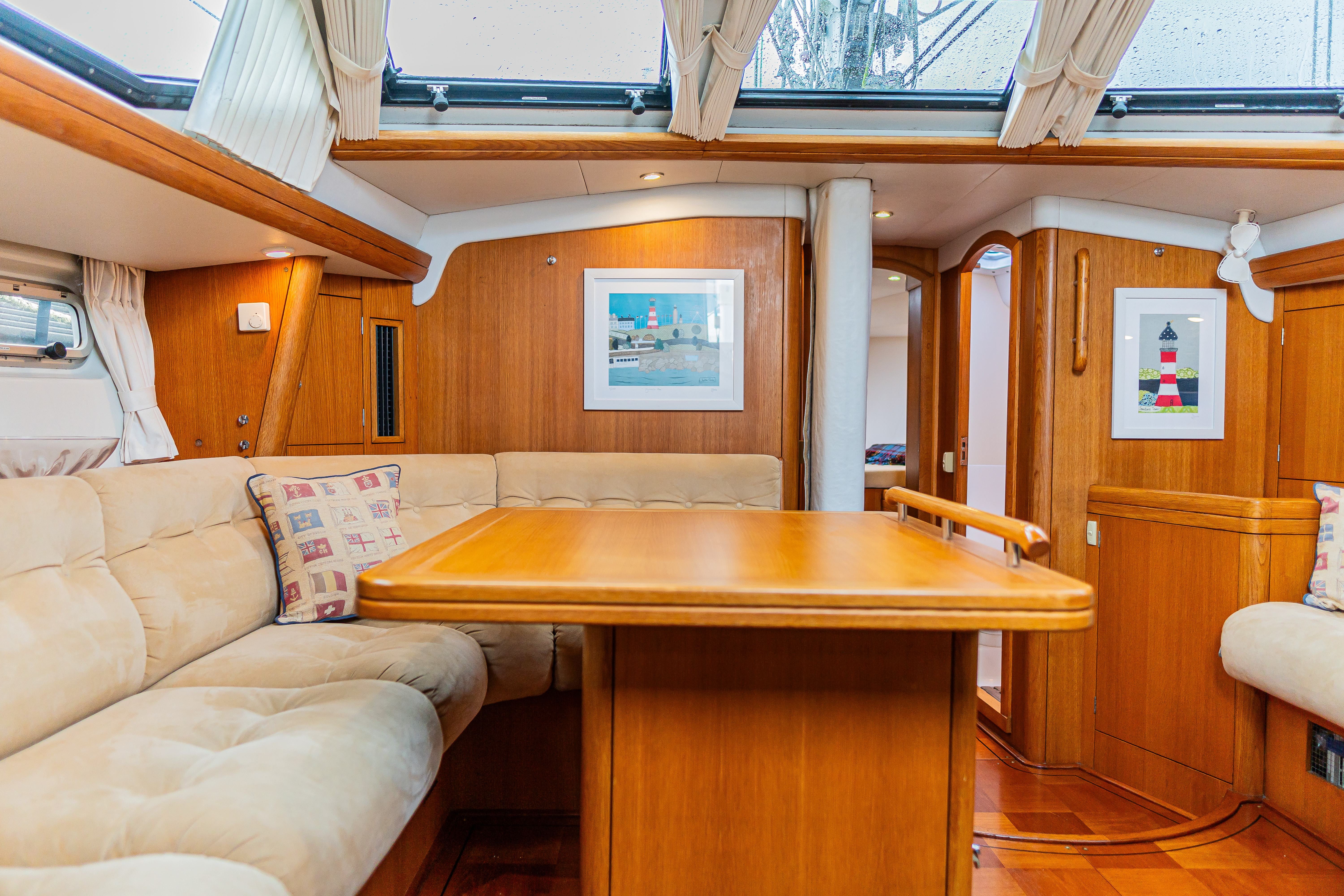 Accessible via the door inboard of the chart table, connects the aft to the utility workshop / stowage locker beneath the cockpit. Proves a very handy storage area