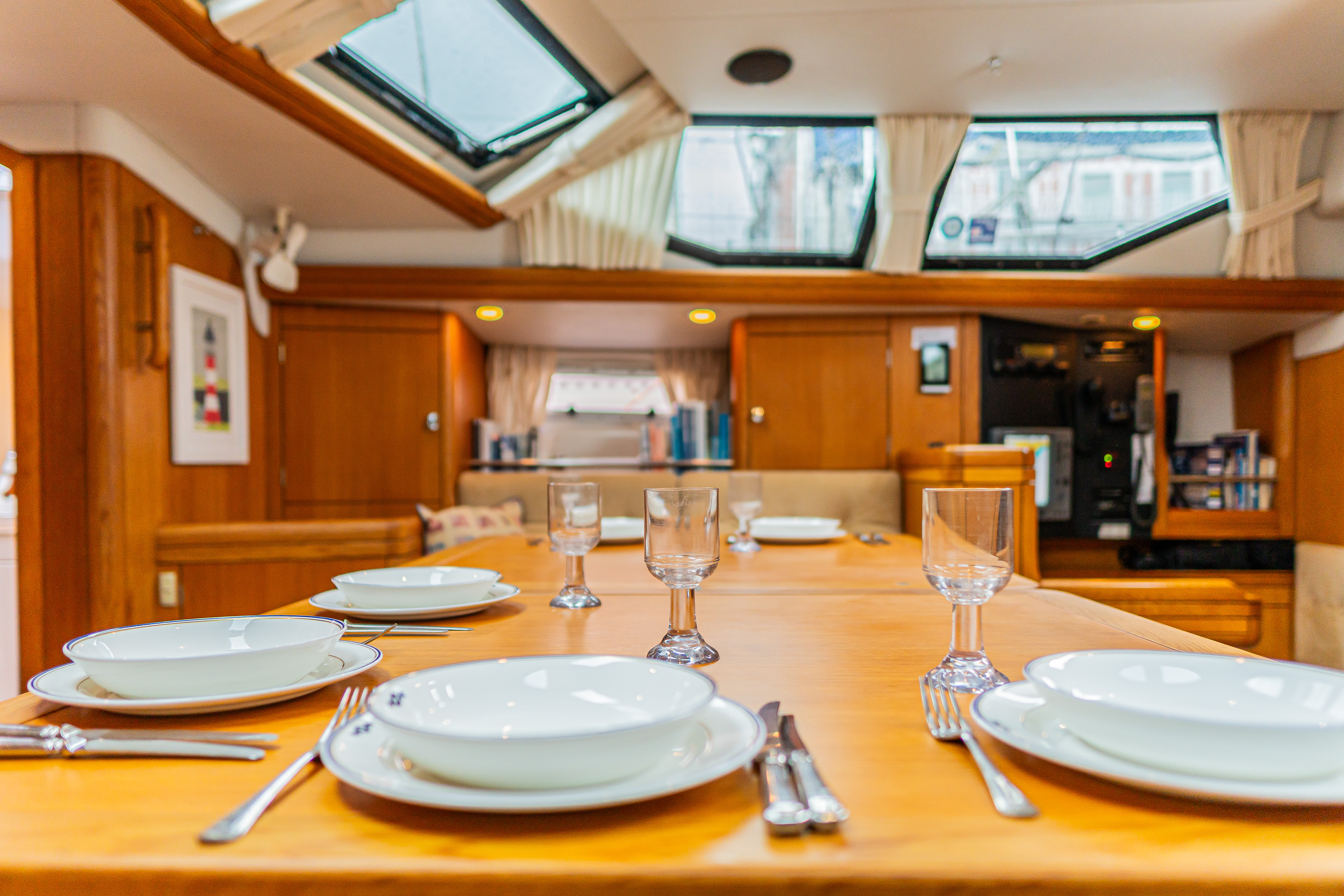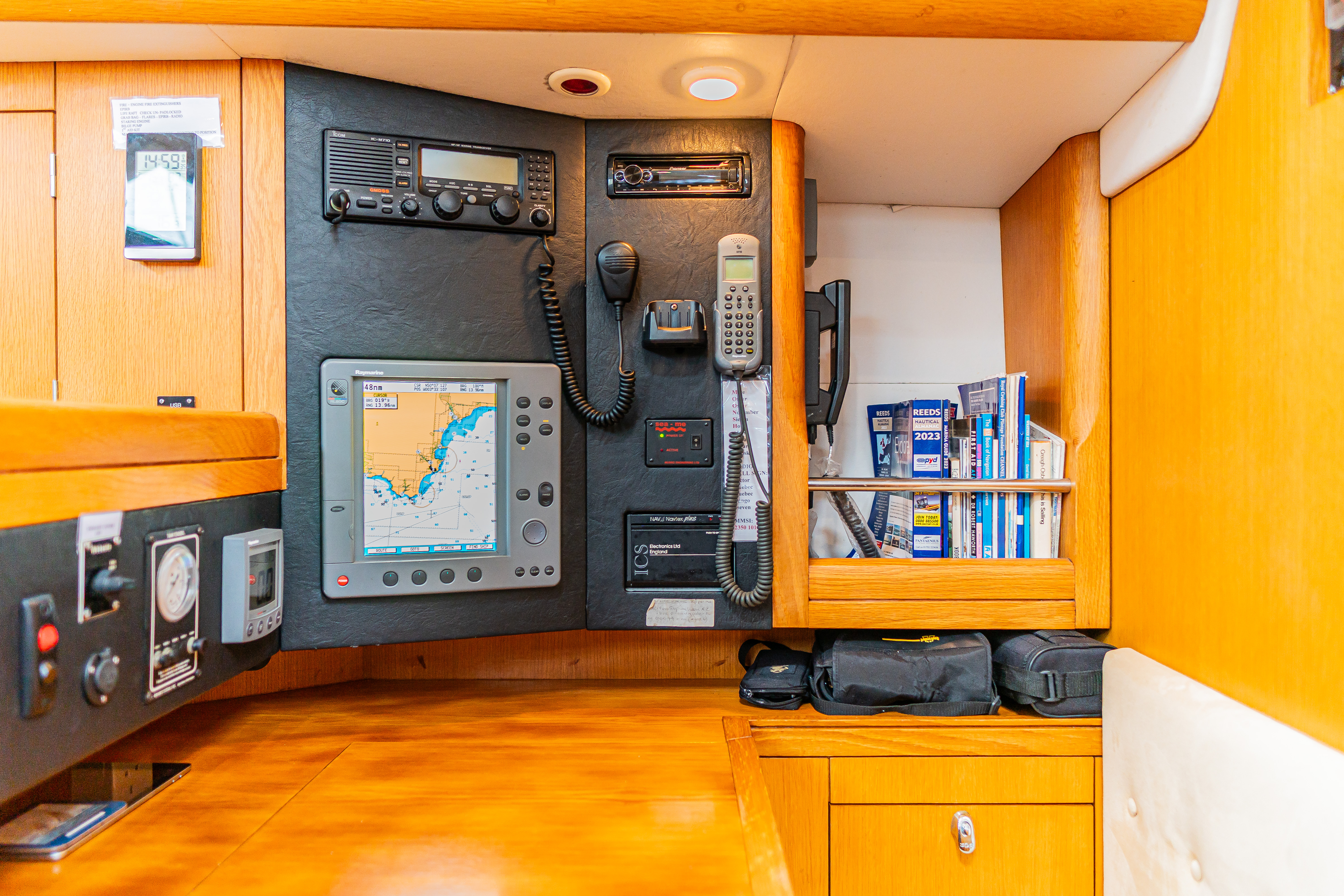 Navigation station forward facing at the aft starboard end of the saloon.