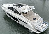 She is finished with spotless satin walnut joinery, complimented further with the leather seating, designer fabrics and cabinetry that Fairline are renowned for.