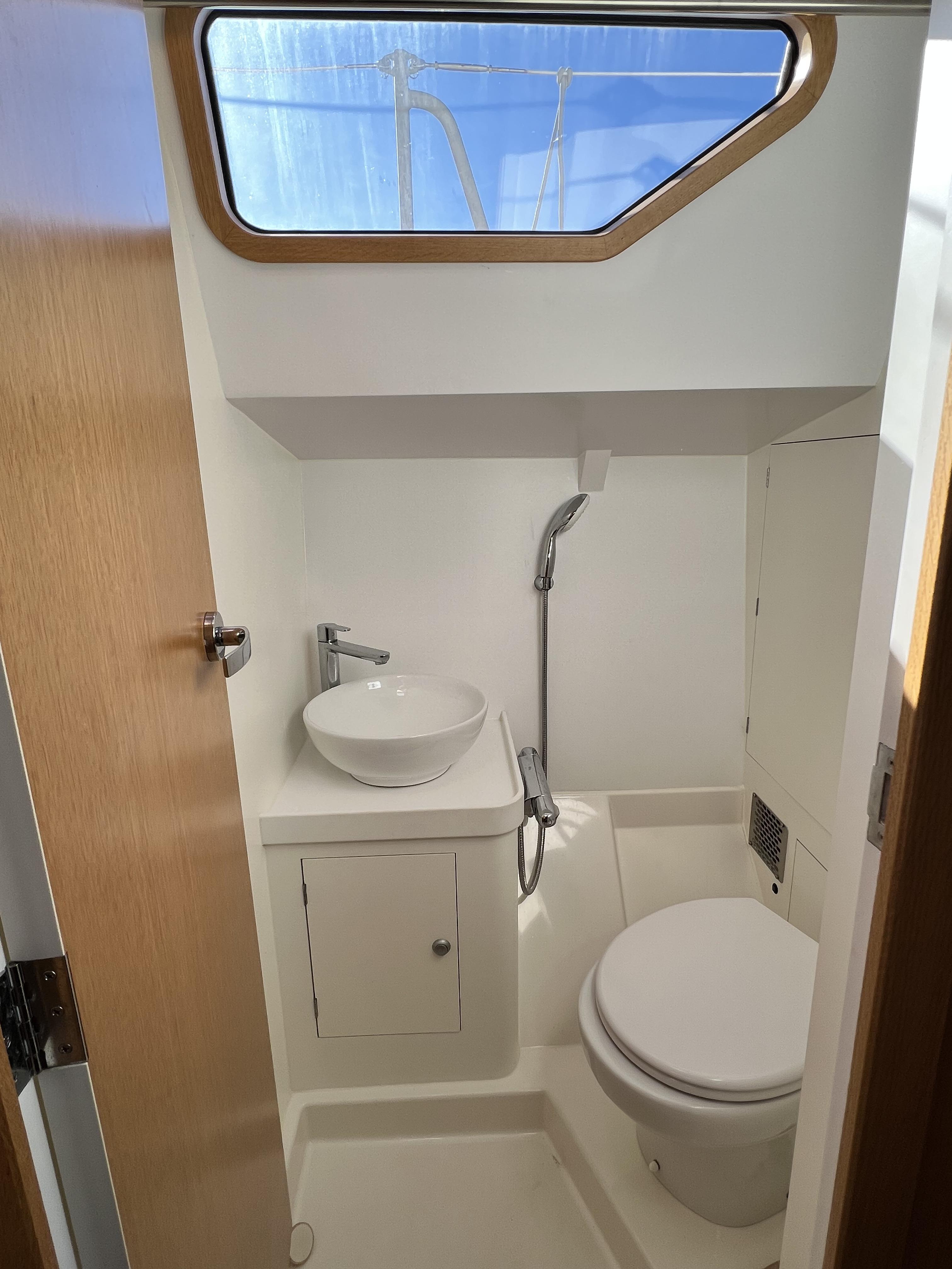 2 cabines avec salles d’eau (douches + WC électriques), TV HDMI dans carré et cabine avant