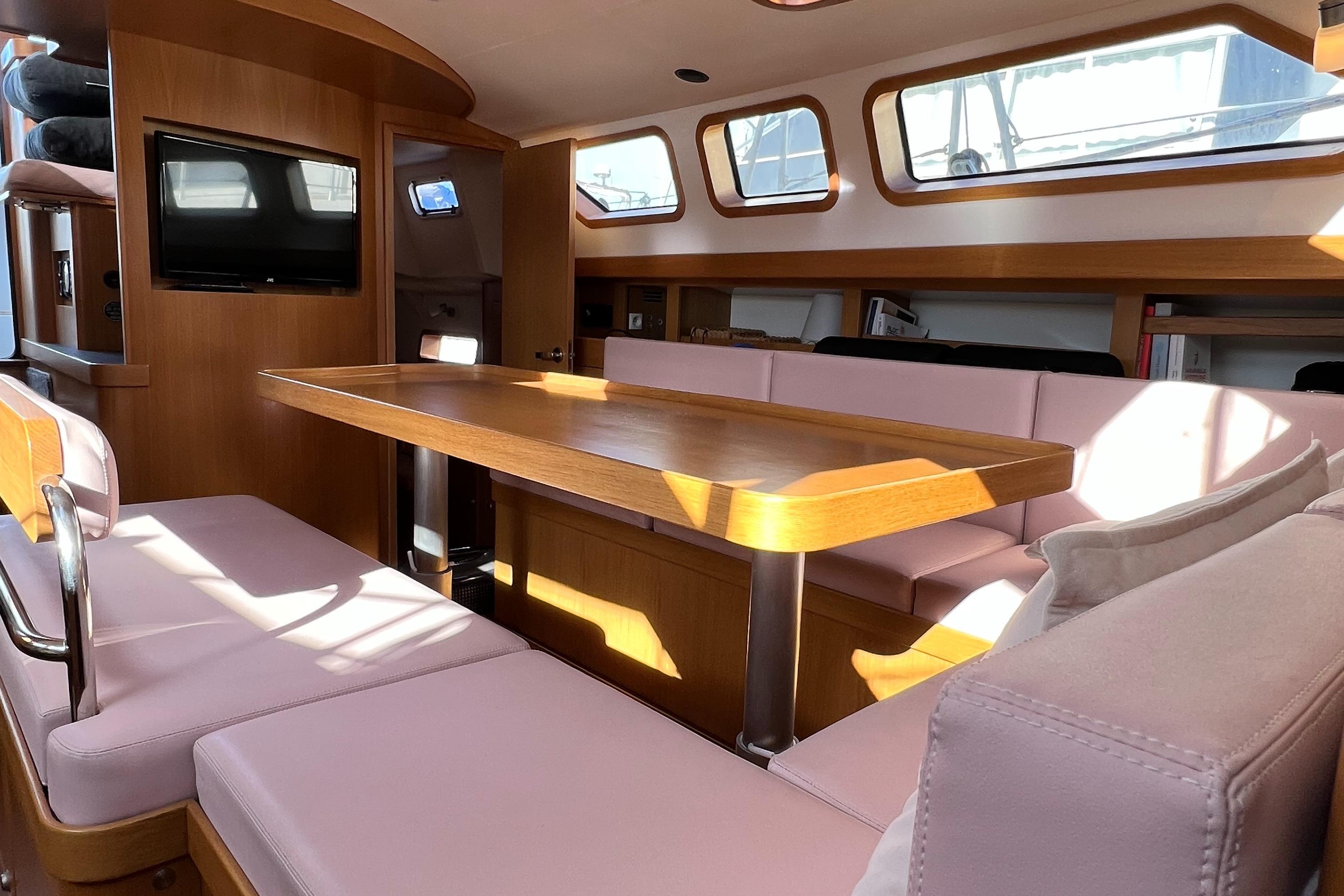Voilure : GV 3 ris (61 m²), génois enrouleur (69 m²), trinquette, spi et gennaker