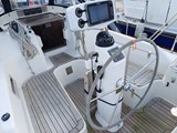 Pedestal mounted Lewmar wheel steering with hide covering