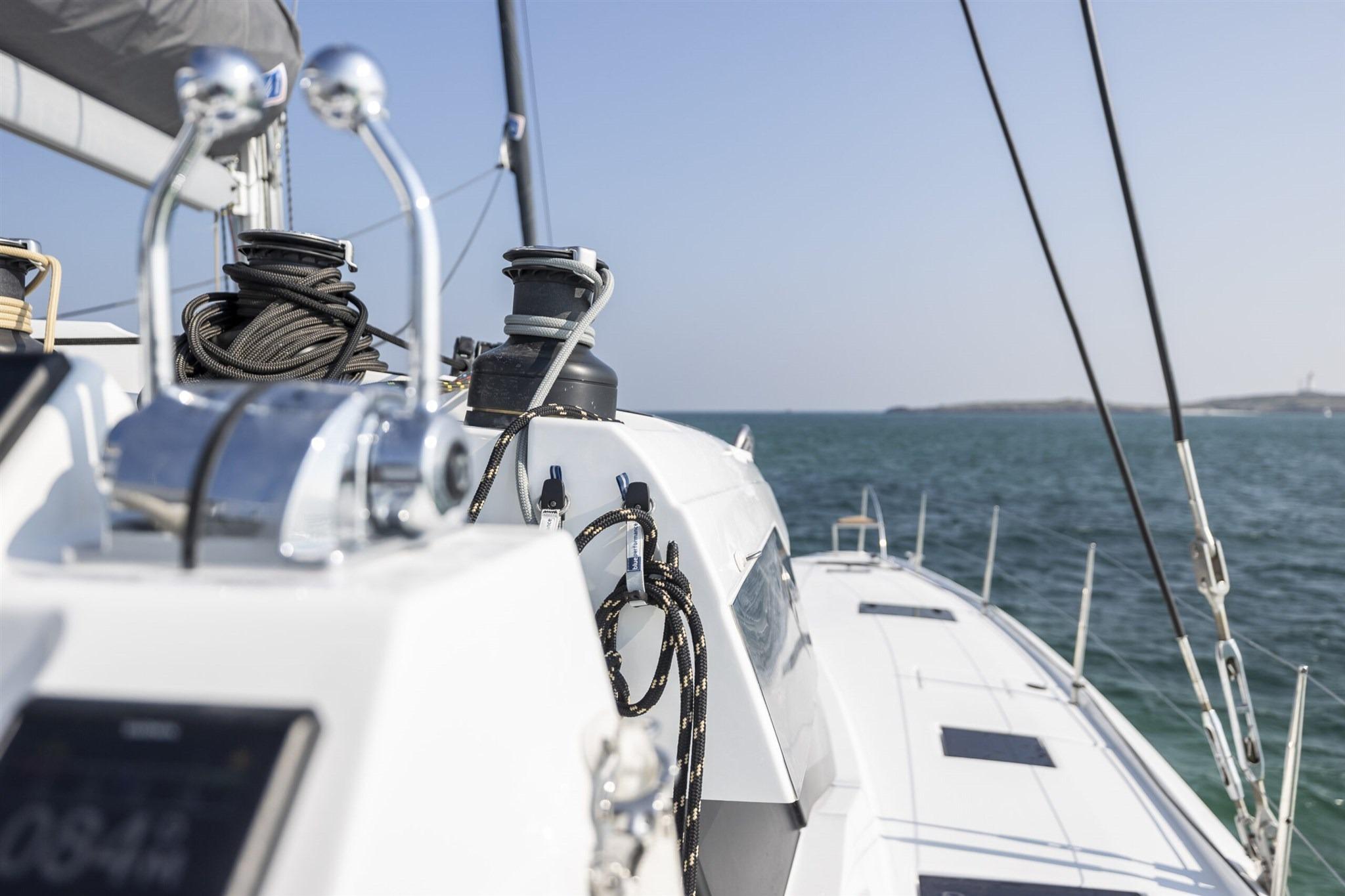 Aura 51 - versione 5 cabine e 5 bagni Confort. No flag e Full Garanzia. Tende nelle cabine, kit ormeggio + 6 parabordi , randa a corno full batten, hook di randa automatico, Lazy Jack, verricello elettrico 1700 Watts, Antenna VHF in testa d'albero pre-cablato, due sedute svedesi, Stopper doppi per rinvio terzaroli 2 e 3, presa 12V interna e presa 12V stagna esterna, doccetta di coperta (acqua calda), autoscatto pompe sentine, Lazy bag, copri timone a ruota, 1 Winch elettrico drizza di randa, luci interne a LED di cortesia, acqua di mare sotto pressione, Pack audio Fusion Bluetooth 4 casse, Rete 220V principale con caricatore, Caricatore convertitore 3000W/ rete 220V 50 hz, pannelli solari integrati 2000W, Pack video TV/HIFI, Antenna TV/HIFI, upgrade Bose audio system, cuscineria esterna ( pozzetto + lounge deck ), 1 Winch elettrico scotta genoa, luci di cortesia pozzetto,2 motori yanmar 4J80, Cuscineria interna PVC Nature, Cuscineria Esterna PVC Beige/ Black Elios, Oscuranti esterni per finestre del salone, Estensione Tavolo pozzetto Teak, Cuscineria esterna salone di prua, Parabordi specchi di poppa, Gallocce d'ormeggio e passacavi supplementari, Piastra Gas, Allestimento WC Front-end bd, Corrimano sulle scale, Doppia postazione VHF AIS postaxione di timoneria, GARMIN 2 Smart Cruising, Radar + supporto cablaggio, Freezer 12V 90L, 5 WC elettrici in tazza grande, 2 Batterie ausiliarie AGM 150A supplementari, Tangone ed attrezzatura per gennaker, Comando verricello supplementare con contacatena, Piattaforma tender idraulica, Catena + ancora 32KG.