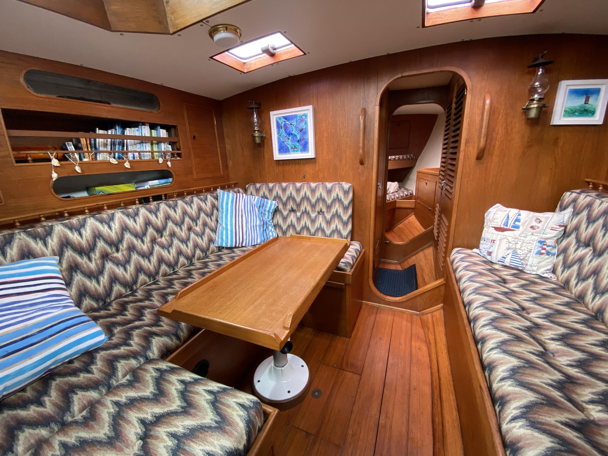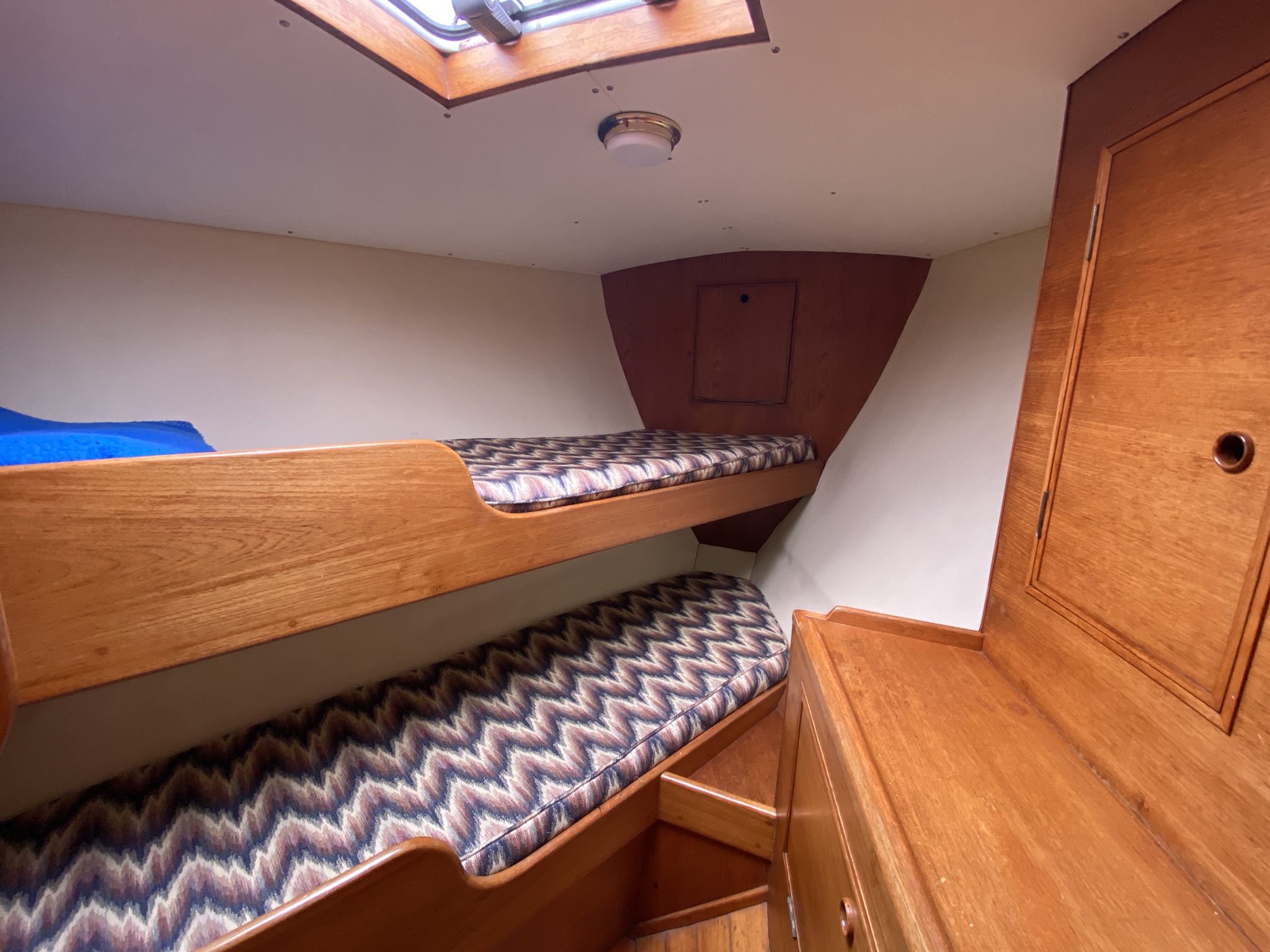 Tradewind is the perfect boat for those long weekends and extended passages, with its secure cockpit and moulded helm seat, wide decks for easy access and sizeable sail inventory. Below deck you can see the boat makes the most of its beam and offers a generous saloon (convertible) and U shaped galley with all with ample headroom. Accommodation is arranged in two cabins, sleeping five (One double berth plus three single berths)