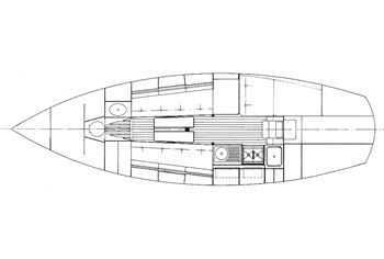 Saloon has settee berths port & starboard fitted with substantial lee cloths with storage underneath, settees fitted out in Jab Alberta (blue check) upholstery.