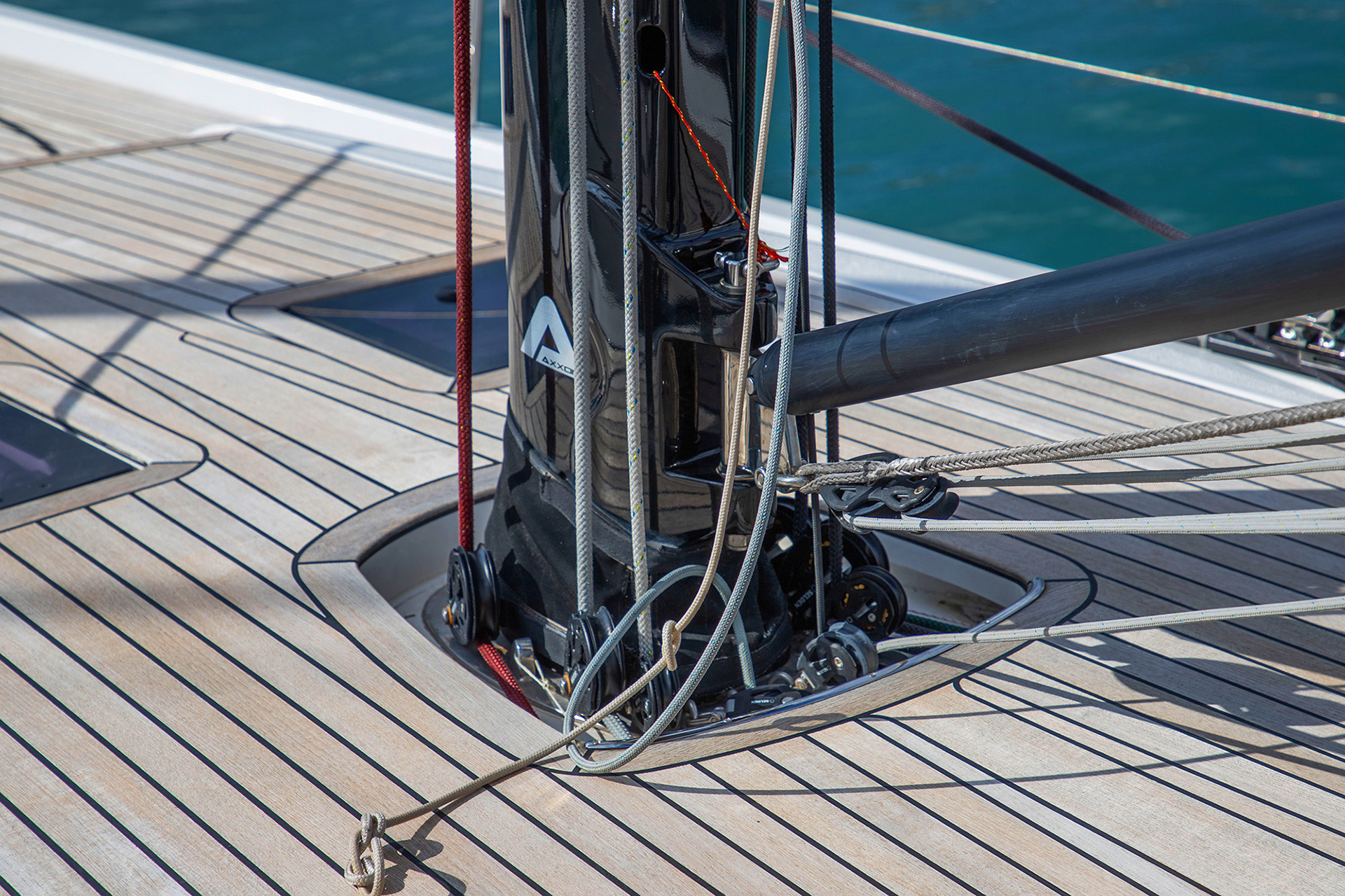 • Additional spinnaker/genoa halyard to the capping (12 mm Dyneema SK78) with jammers