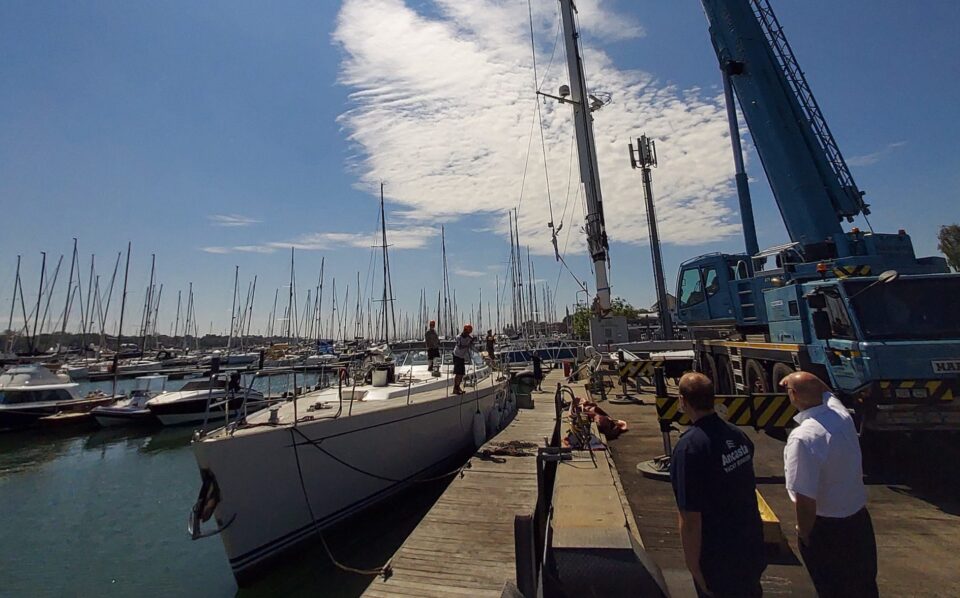 The first job on the list was to de-winterise the yacht before carrying out in-water system checks to identify any issues or signs of wear. We then unstepped the mast with the onsite rigging team from Advanced Rigging and Hydraulics, lifted her out of the water and moved her into the AYS workshop at the end of August.